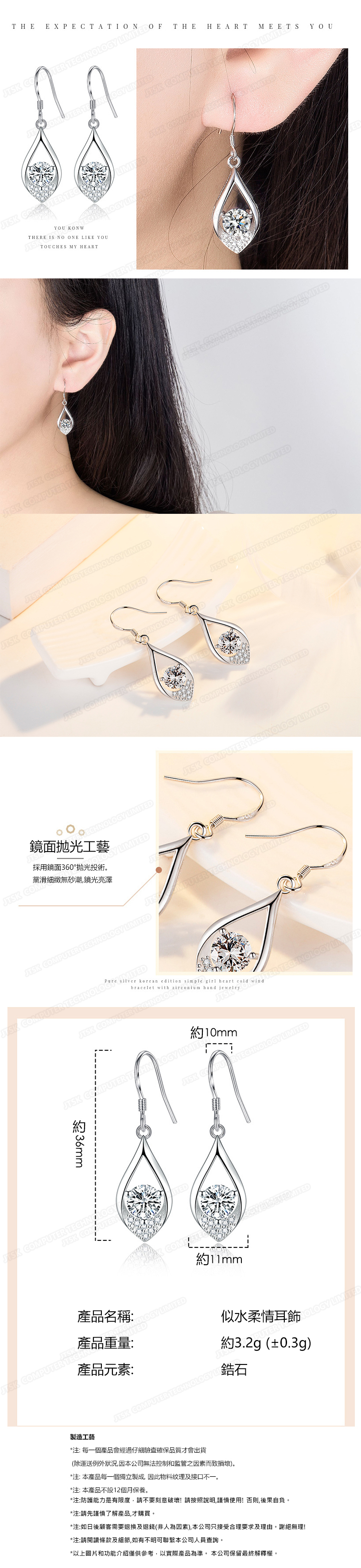 韓國JK 新款似水柔情水滴耳環鑲鑽氣質耳環耳墜鍍銀耳飾 J0859