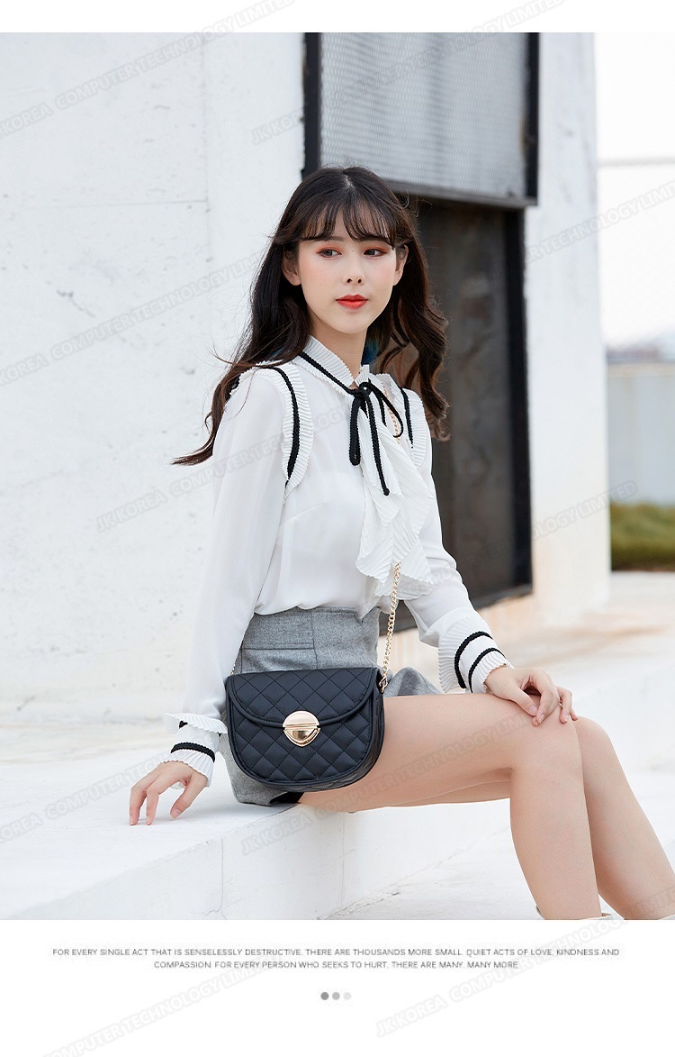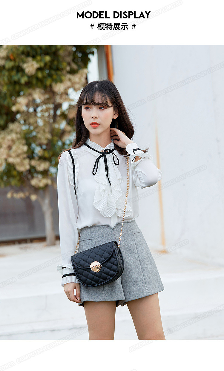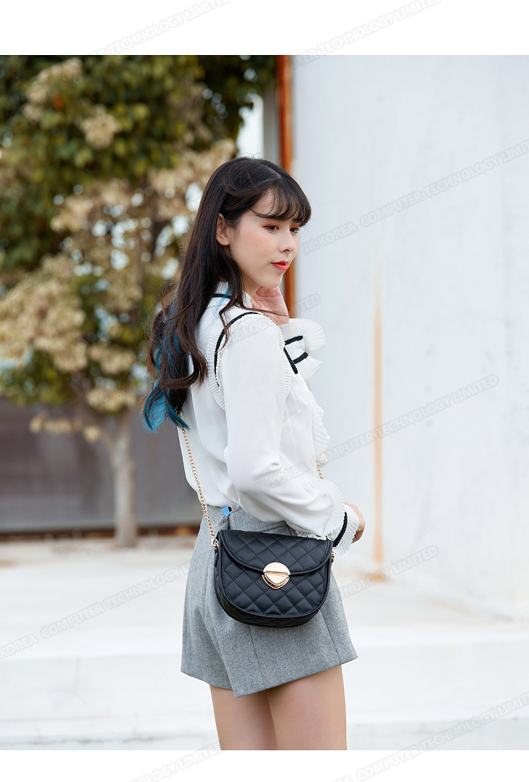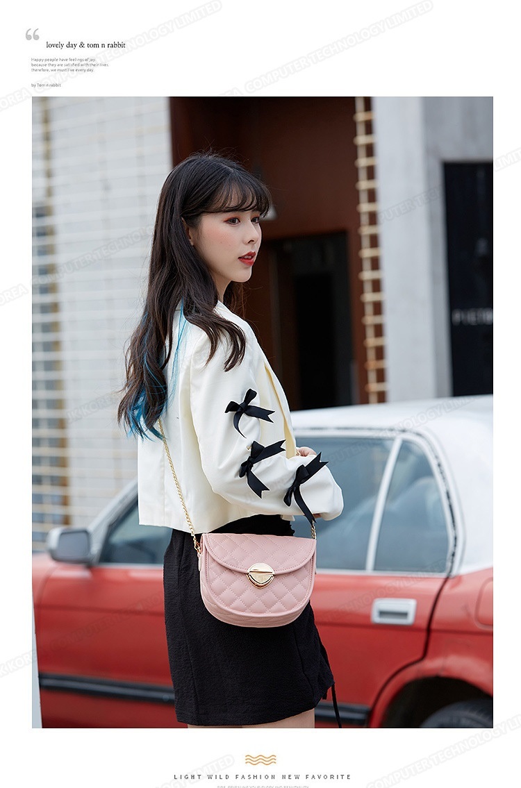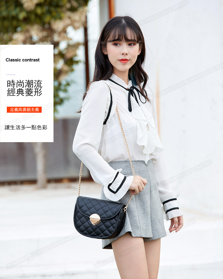 韓國JK 新款百搭潮鏈條馬鞍斜挎包菱格新款韓版單肩包 J0582