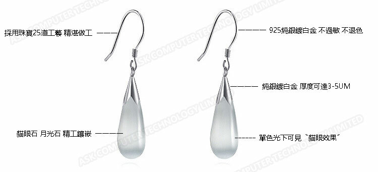 韓國JK 新款女貓眼石水滴耳環 J0103