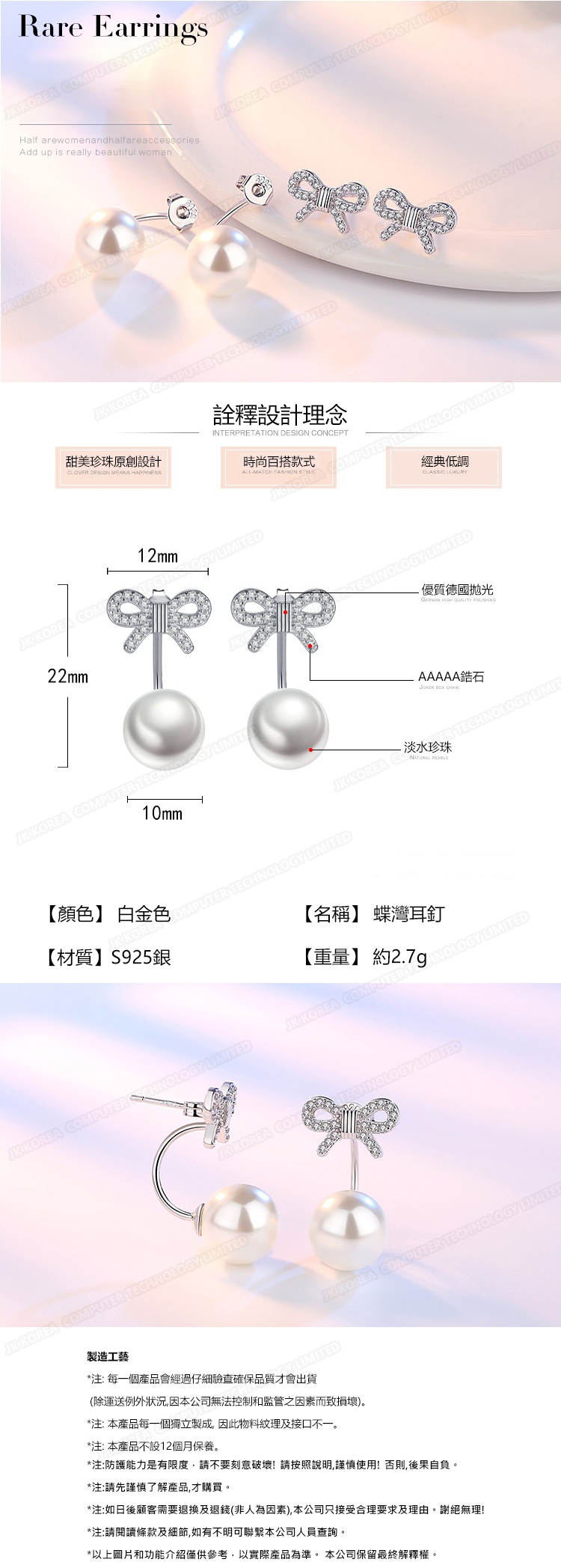 韓國JK 新款鋯石蝴蝶結珍珠一款兩戴鍍銀耳釘韓版耳飾品女生耳釘 J0853