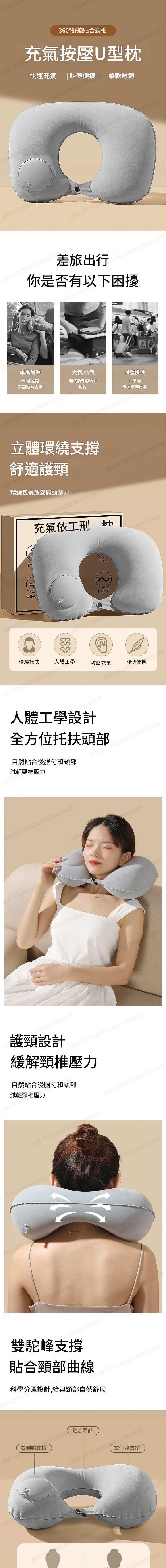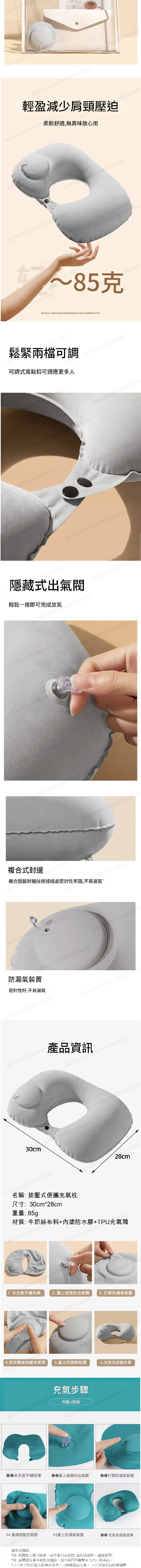韓國JK 按壓式充氣U型枕 摺疊護頸枕 J0992