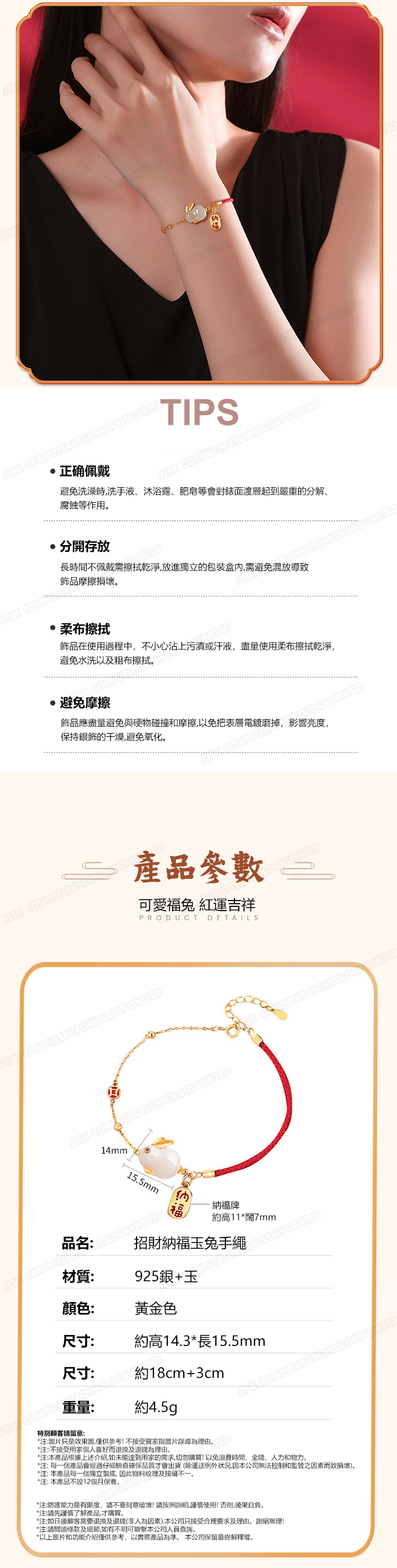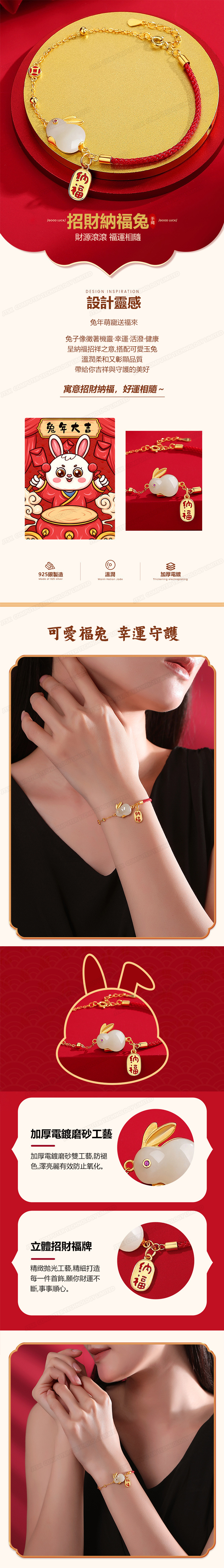 韓國JK S925銀招財玉兔手鏈 十二生肖兔年本命年和田玉紅手繩 J0875