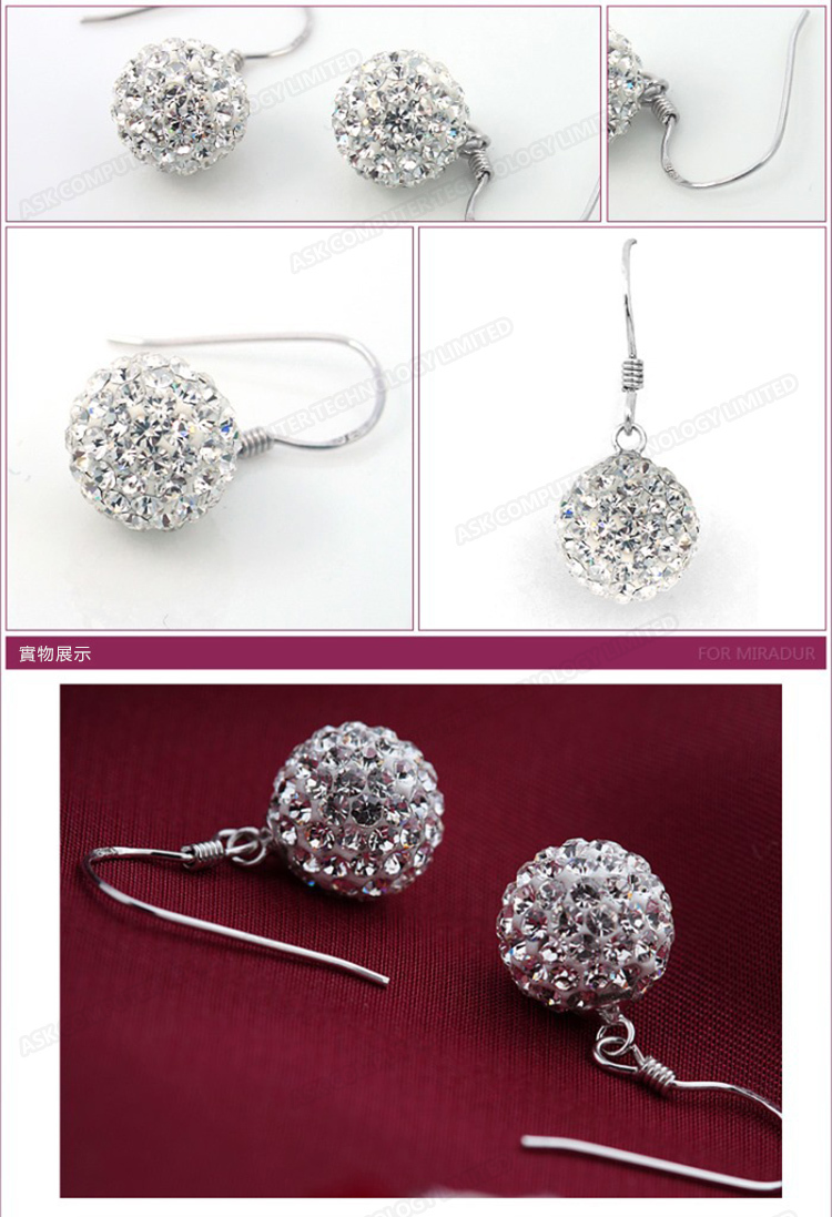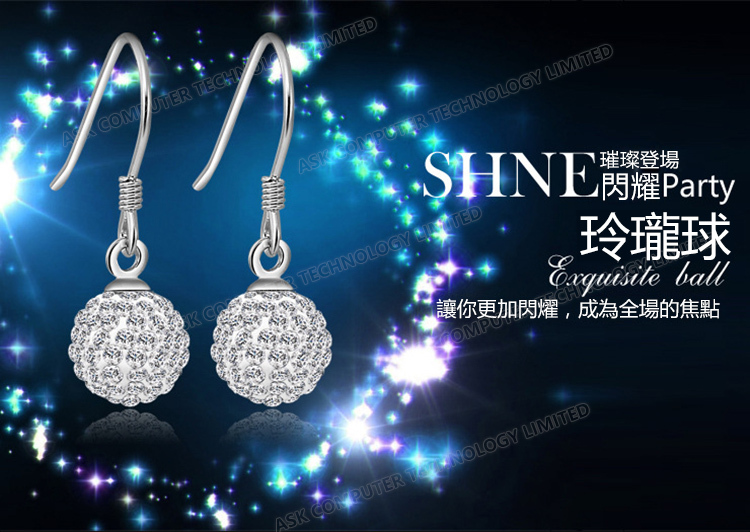 韓國JK 鍍銀10MM滿水鑽公主球耳環 J0245