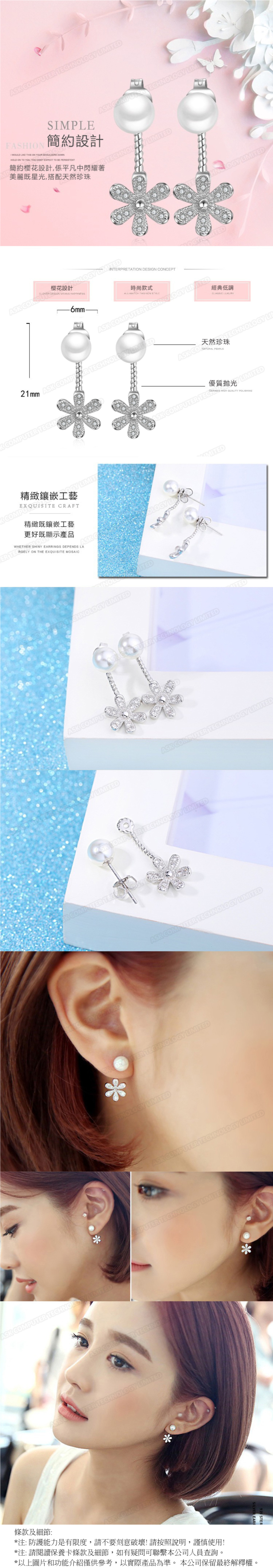 韓國JK 鍍銀雛菊氣質花朵後掛式珍珠耳釘 J0113