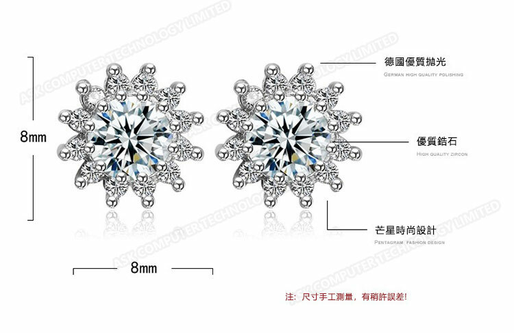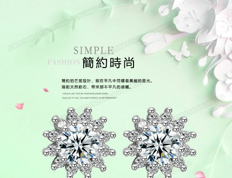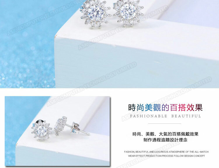 韓國JK 鍍銀花閃光鋯石滿鑽耳飾 J0115
