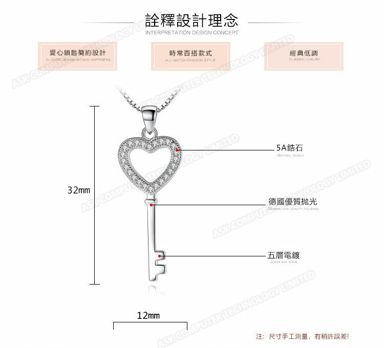 韓國JK 鍍銀鑰匙項鍊 J0106