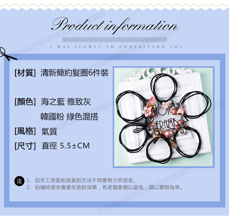 韓國JK 小清新簡約森女系頭繩髮圈(盒裝6件) J0341