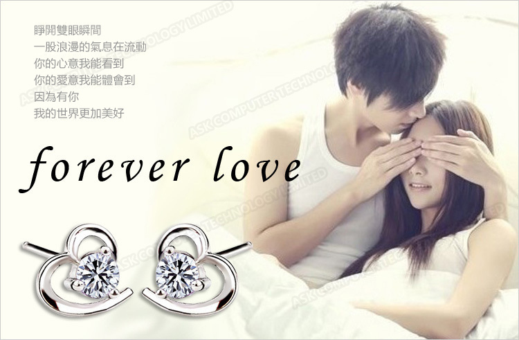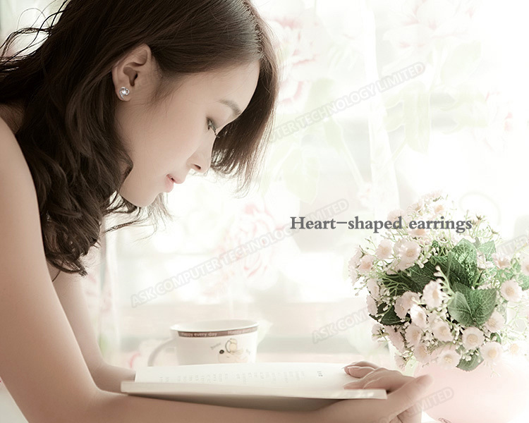 韓國JK 柔美心形鋯石鍍銀耳釘 J0254