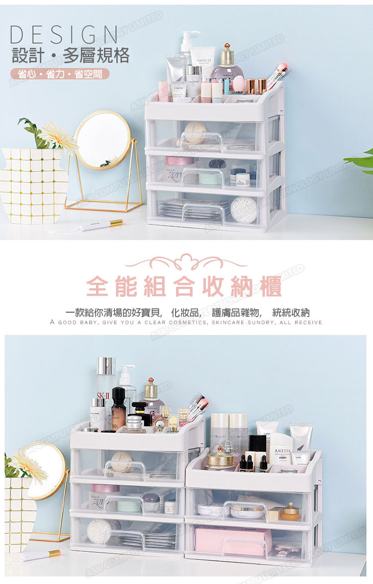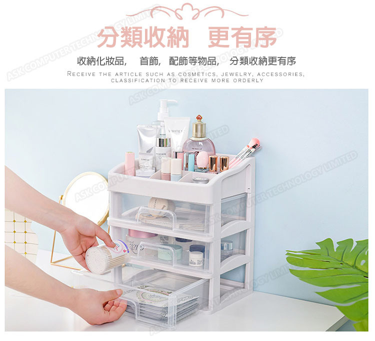 韓國JK 三層抽屜式防塵化妝品收納盒 J0310