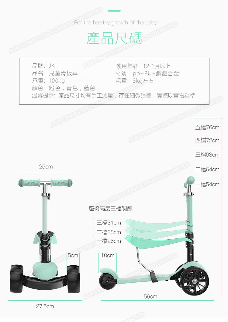 韓國JK 可坐三輪三合一兒童滑板車 (J0235)