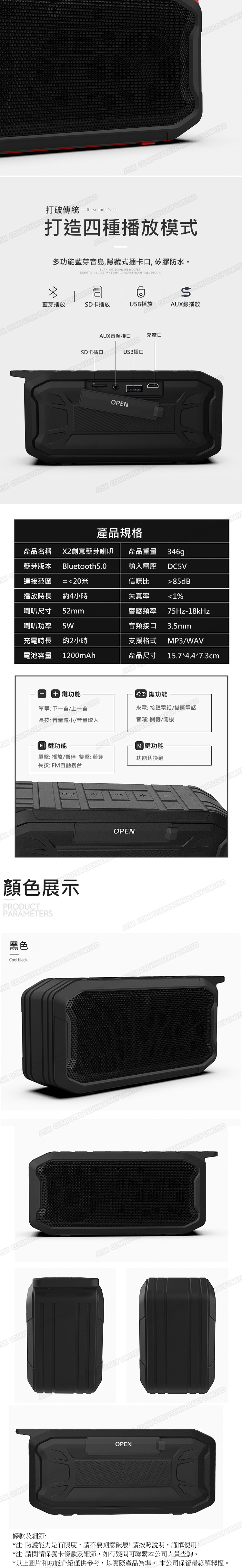 韓國JK 升級版X2無線藍牙音箱重低音戶外IPX7防水創意音響 J0610