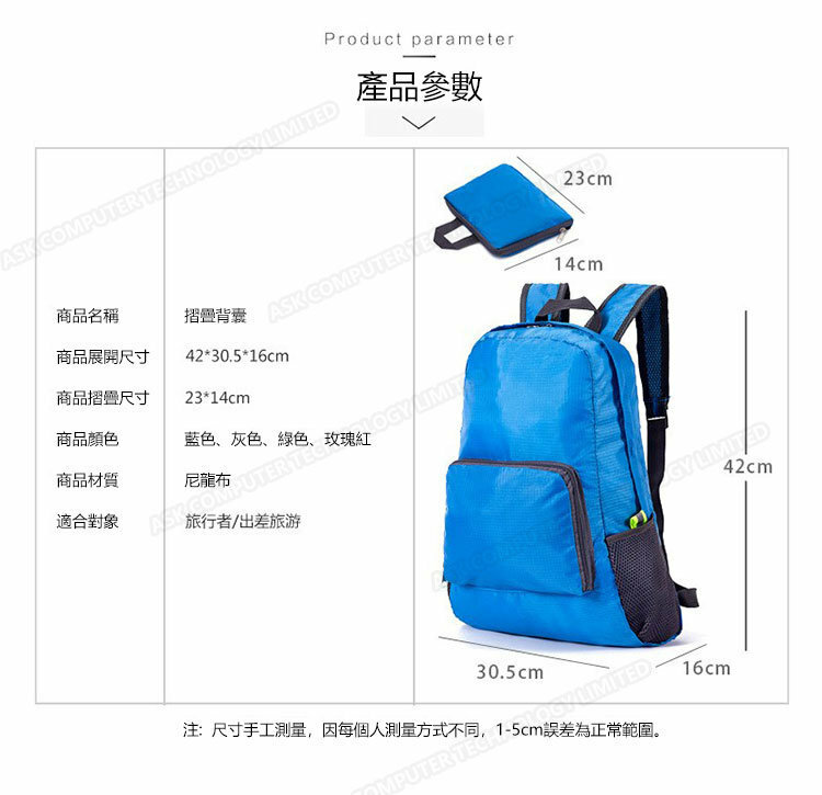 韓國JK 防水輕便折疊背囊 (P2604)