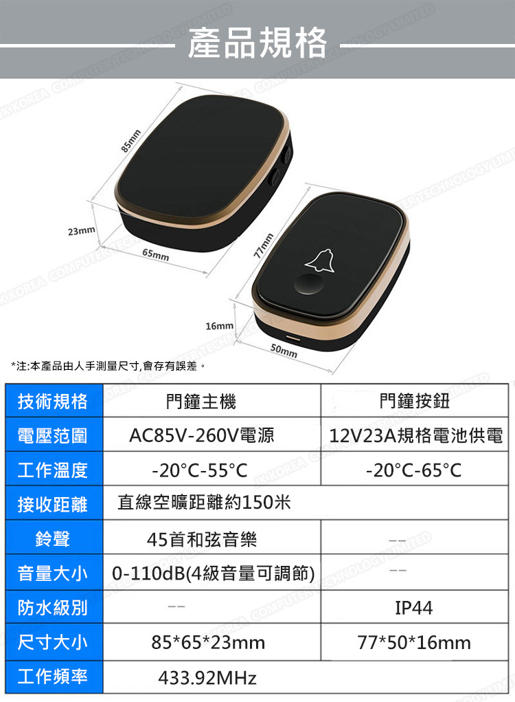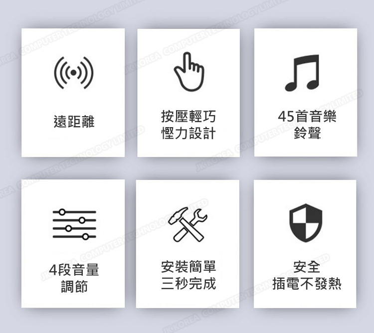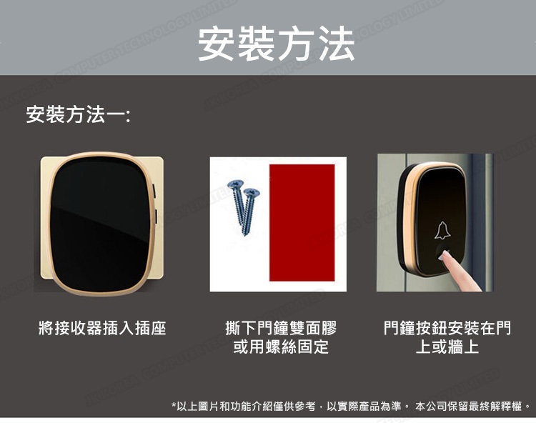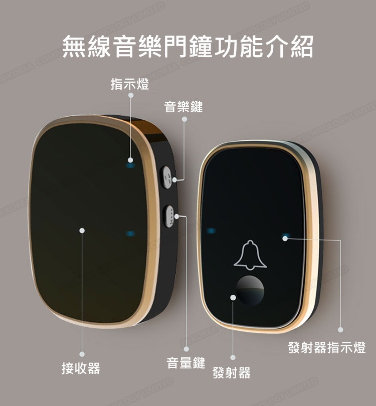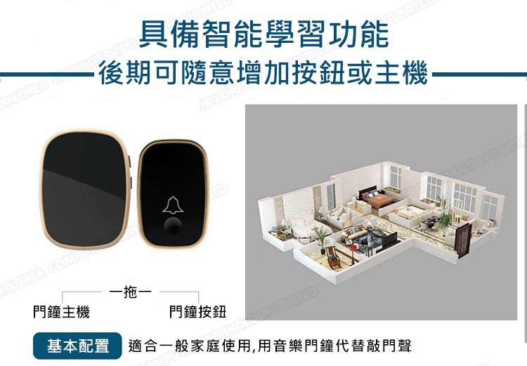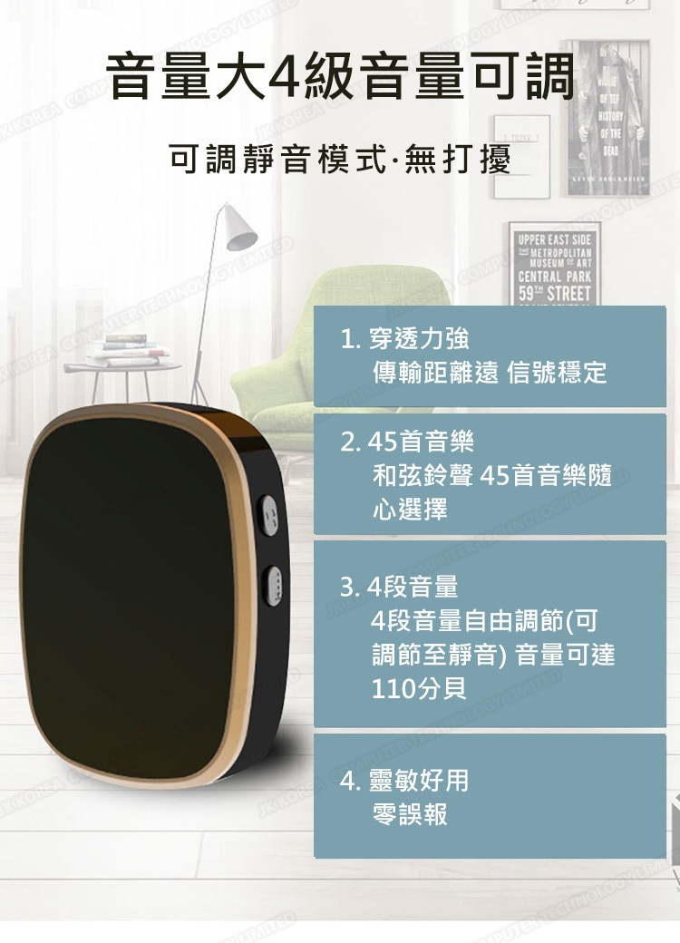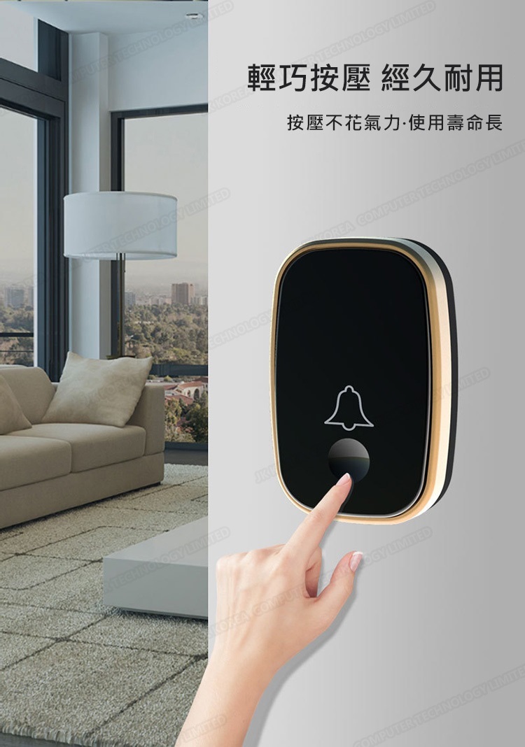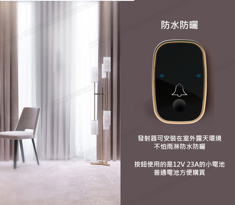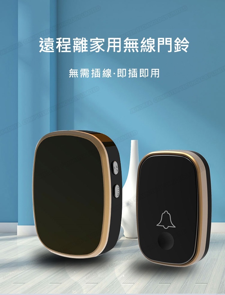 韓國JK 無線門鈴一拖一智能電子防水門鈴呼叫器遠距離搖控家用叮咚門鈴 (J0635)