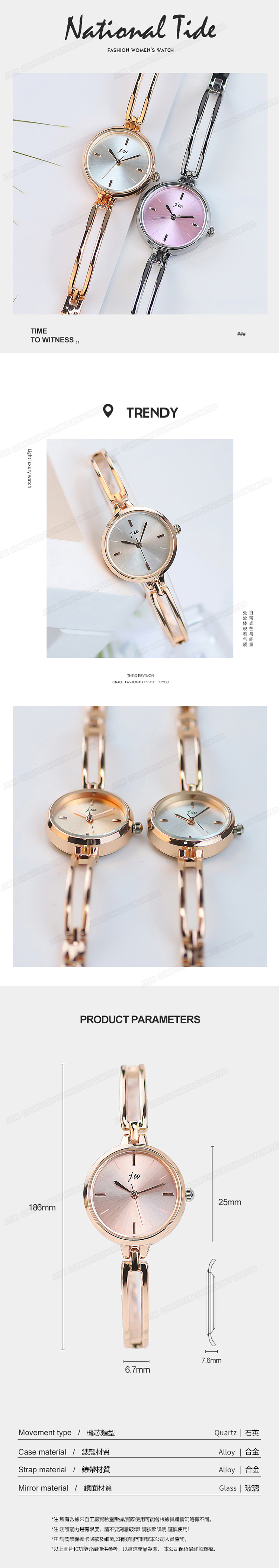 韓國JK 女款金屬錶帶石英手錶 (粉紅色) J0918