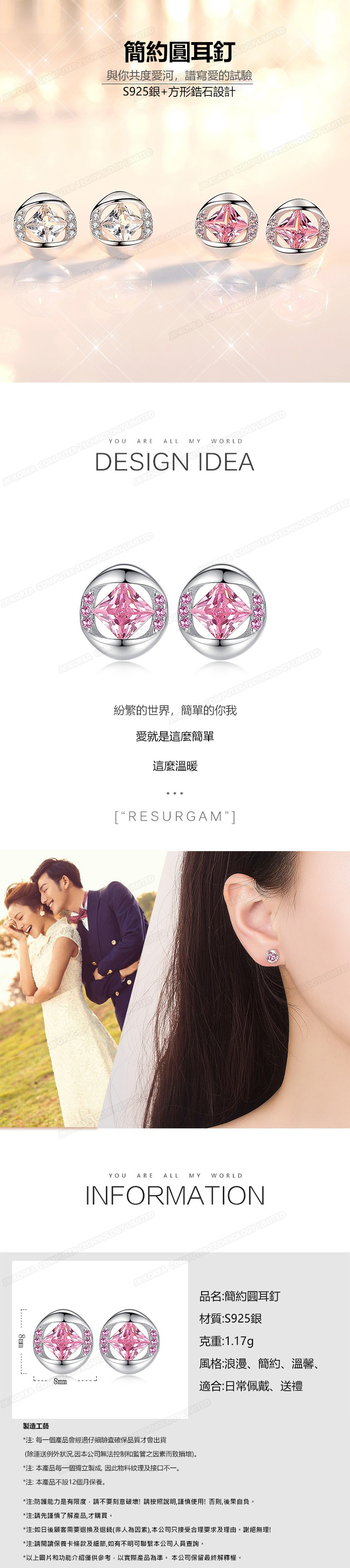 韓國JK 女款簡約韓版可愛粉色鋯石耳釘 J0844