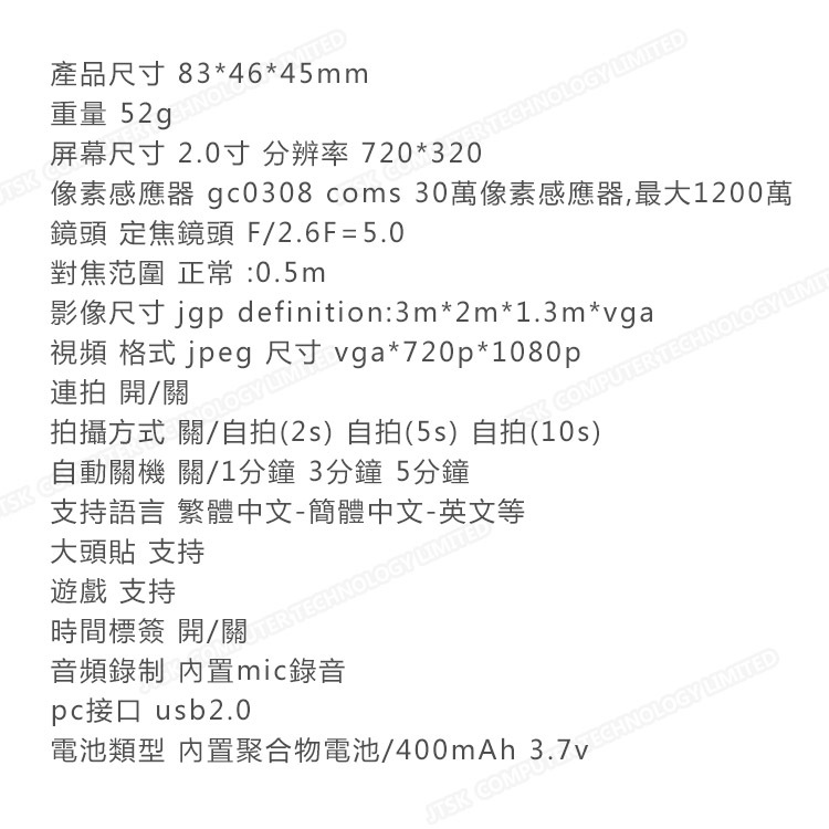 日本JTSK 兒童D-168可拍照內置遊戲數碼相機 (P2542)