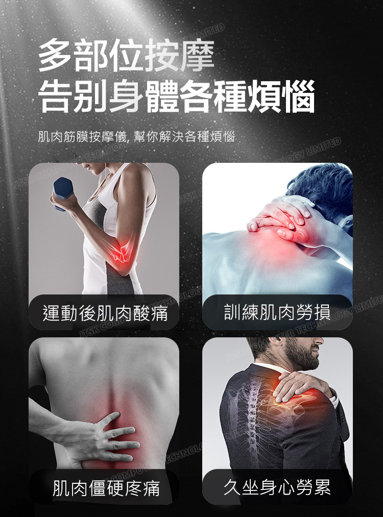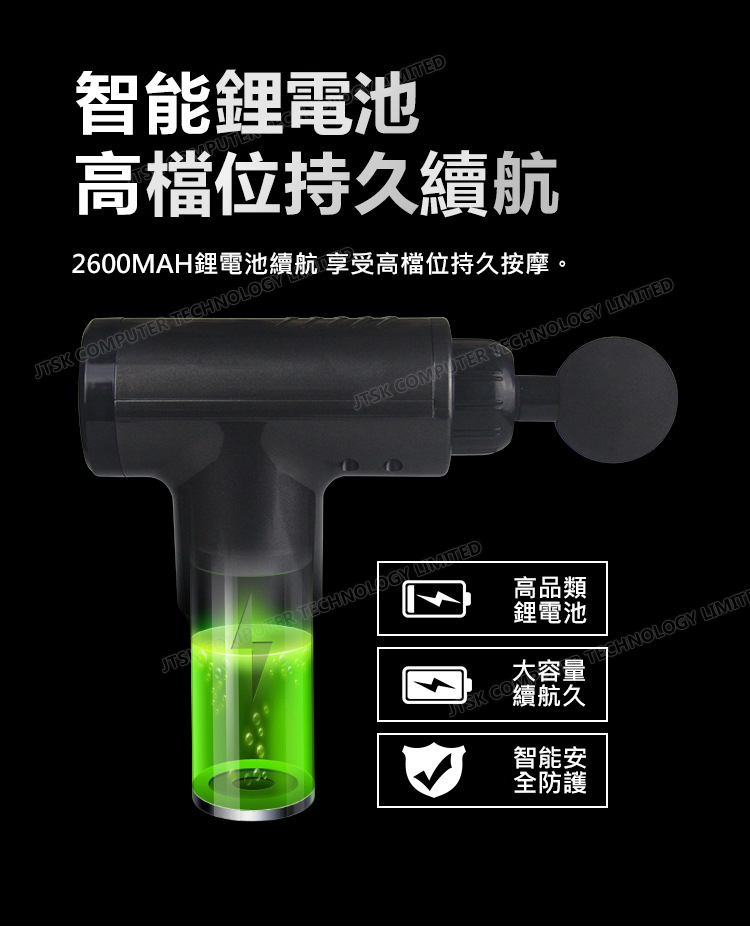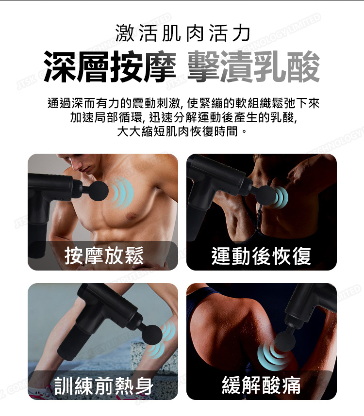 日本JTSK 高頻震動緩解酸痛鬆弛肌肉深層治療按摩槍+送(4個按摩頭) (P3004)