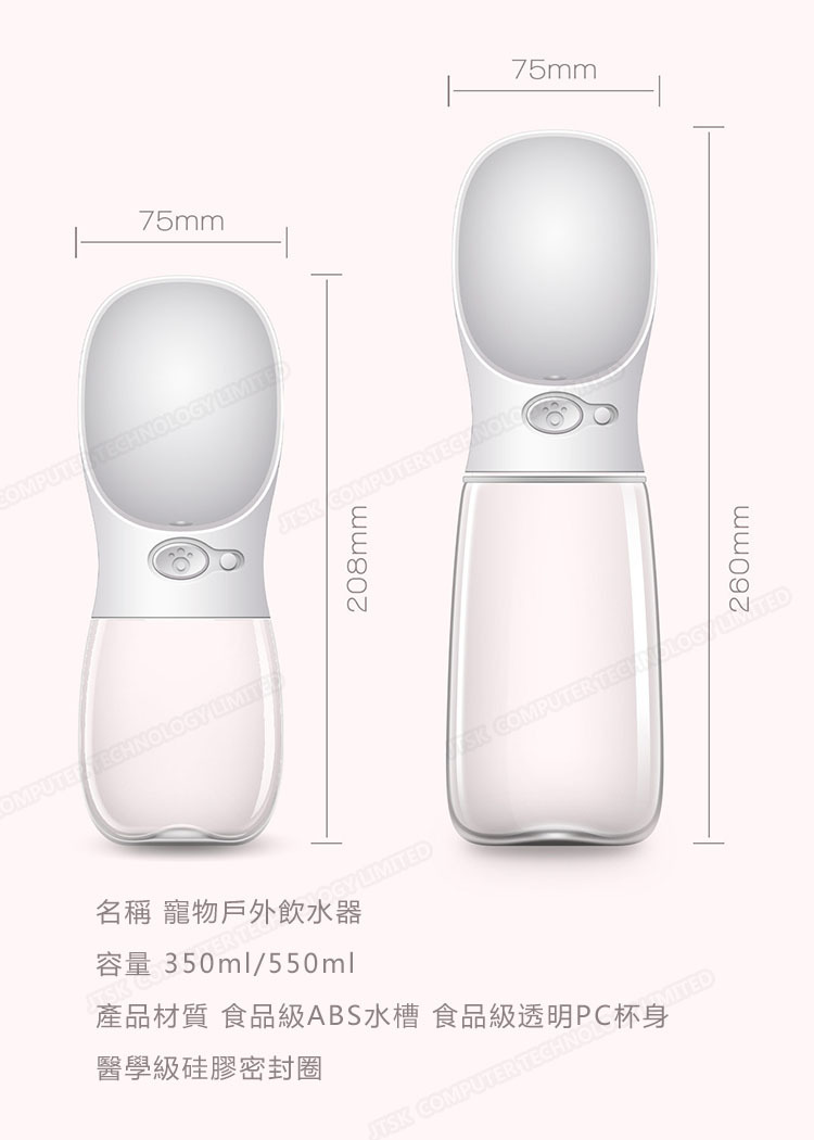 日本JTSK 便攜式寵物戶外飲水器隨行杯-550ML (P2664)