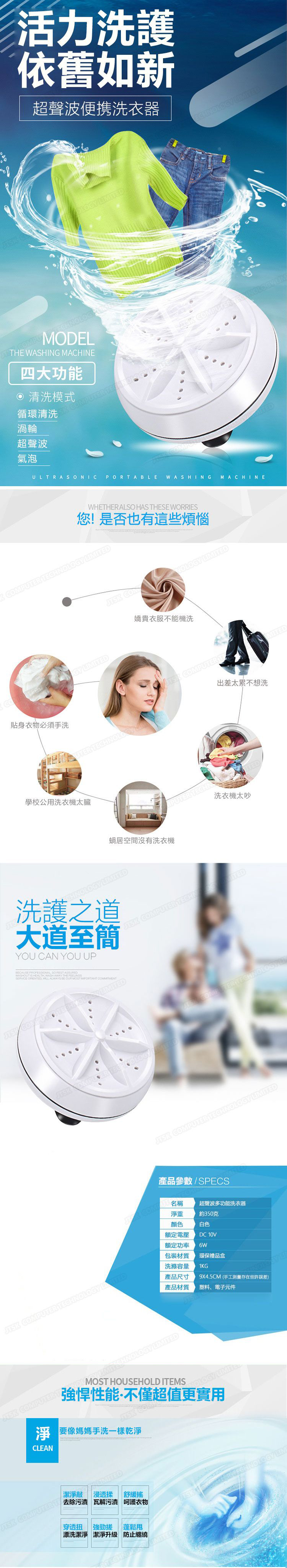 日本JTSK 迷你便攜式超聲波渦輪洗衣器 P2667