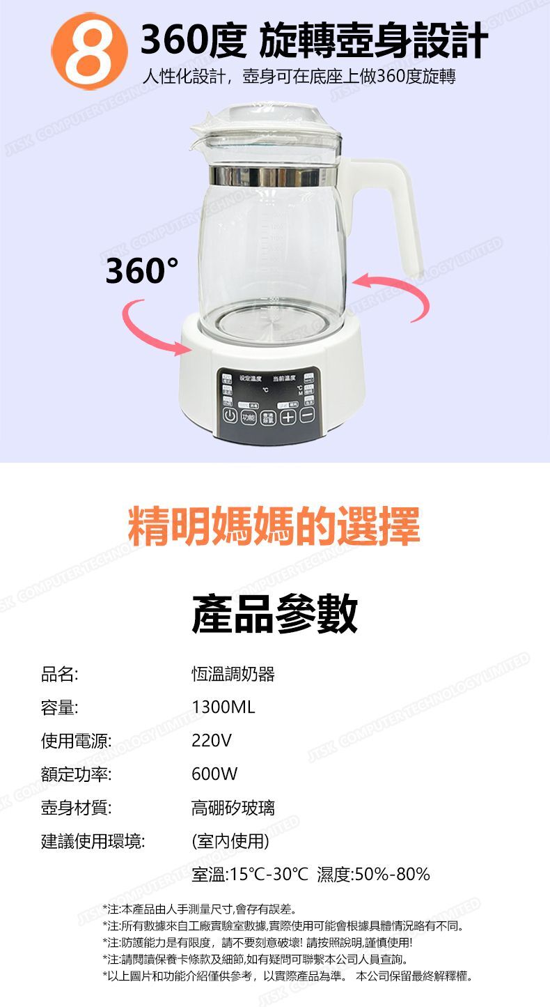 日本JTSK SR-1622 1300ml 恆溫嬰兒配方奶粉機 - 1300ml 容量 家用嬰兒配方奶粉機 智慧恆溫水壺 P2362