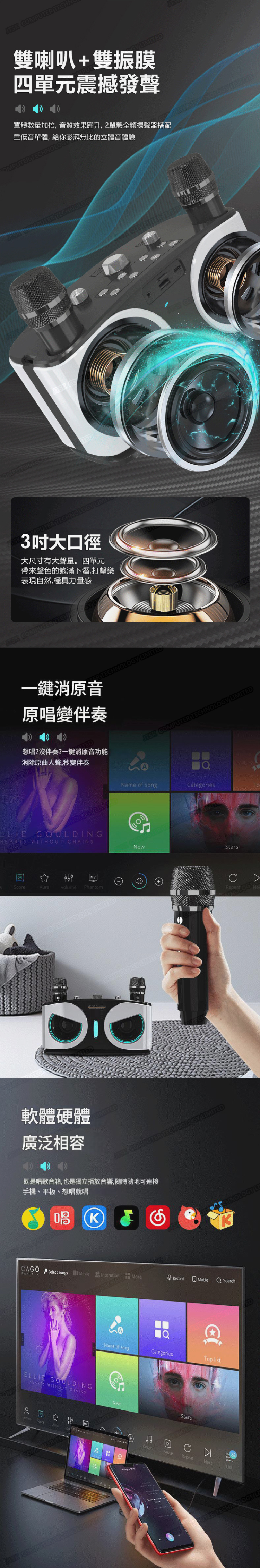 8D環繞雙無線麥藍牙喇叭家用K歌套裝。無論是在家庭聚會還是戶外活動中,這款喇叭都能帶來極致的音樂享受。低音效果強大,配備了雙無線麥克風,讓您和朋友盡情K歌。藍牙連接功能方便操作,輕鬆連接智能設備播放音樂。音質出色、便攜設計,隨處帶來震撼音樂體驗。音樂愛好者的理想之選,適合家庭使用、戶外派對和旅行。
