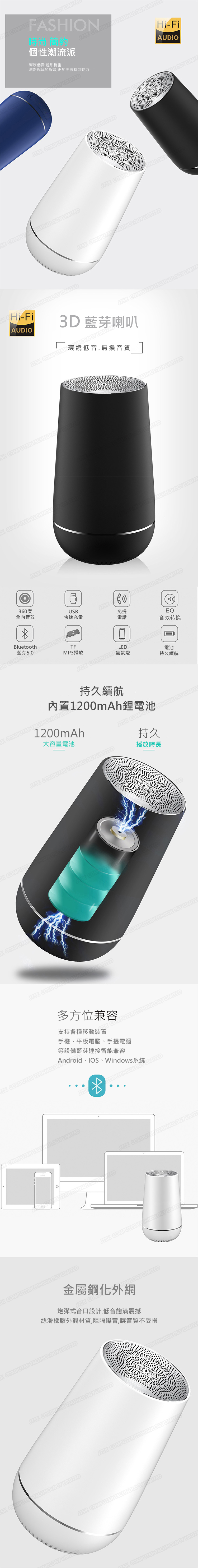 日本JTSK Y5超長續航LED氣氛燈無線藍牙音箱低音炮炮筒音響 戶外便攜手機平板通話通用 - 黑色
