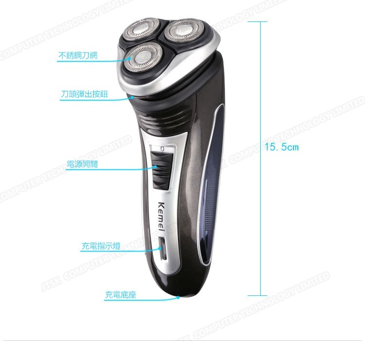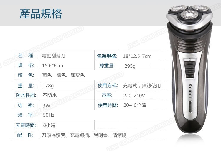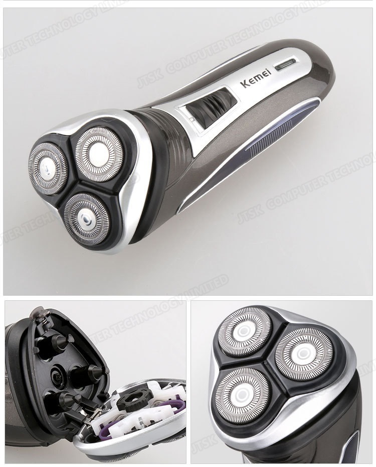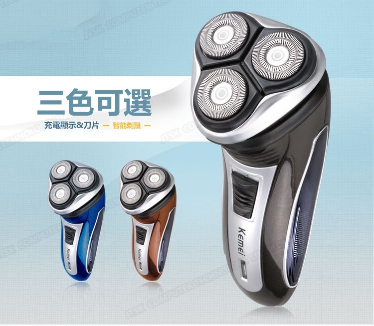 Kemei充電式浮動三頭電動鬚刨 多功能男士電動剃鬍刮鬍刀
