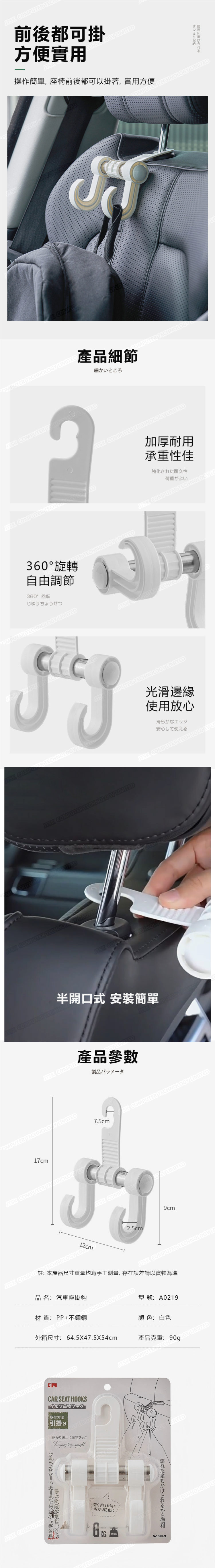 KM - 車載掛鉤座椅背汽車前後座後座背用品車上車內車用勾收納(KM系列)A0219
