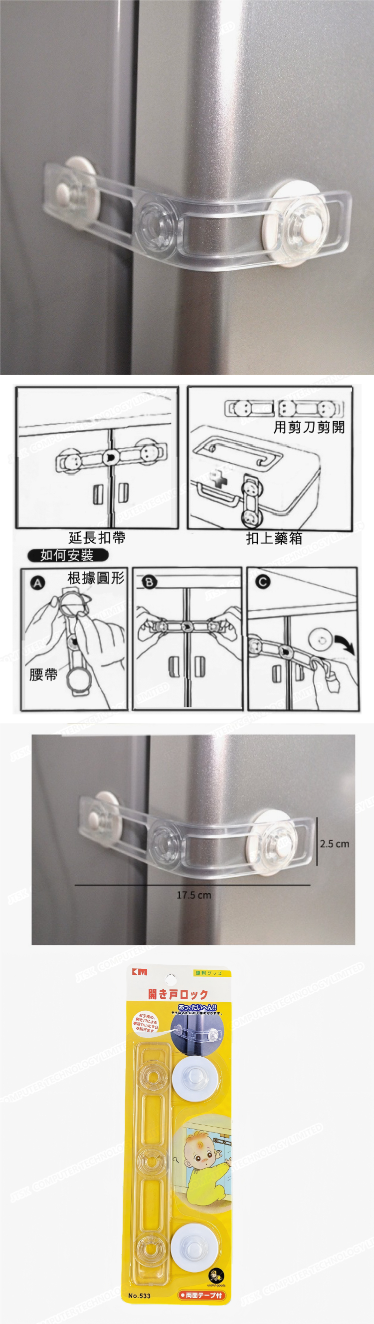 KM - 抽屜櫃桶扣防開門軟帶防夾寶寶手安全鎖黏膠冰箱鎖扣櫃子帶(KM系列) A0232