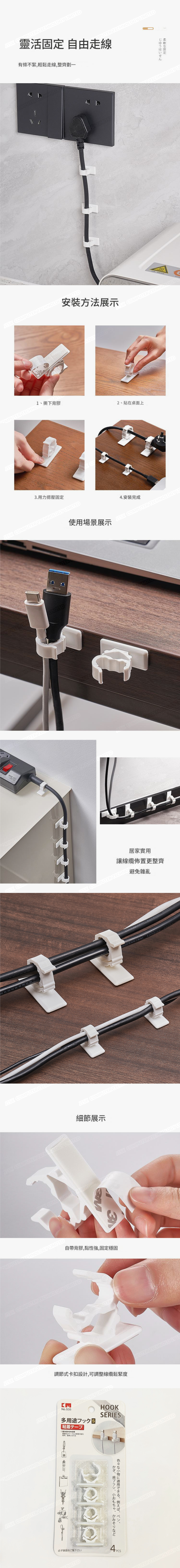 KM - 大黏式電線夾 塑膠易開合佈線固定器排線卡 (4個裝)(KM系列) A0230