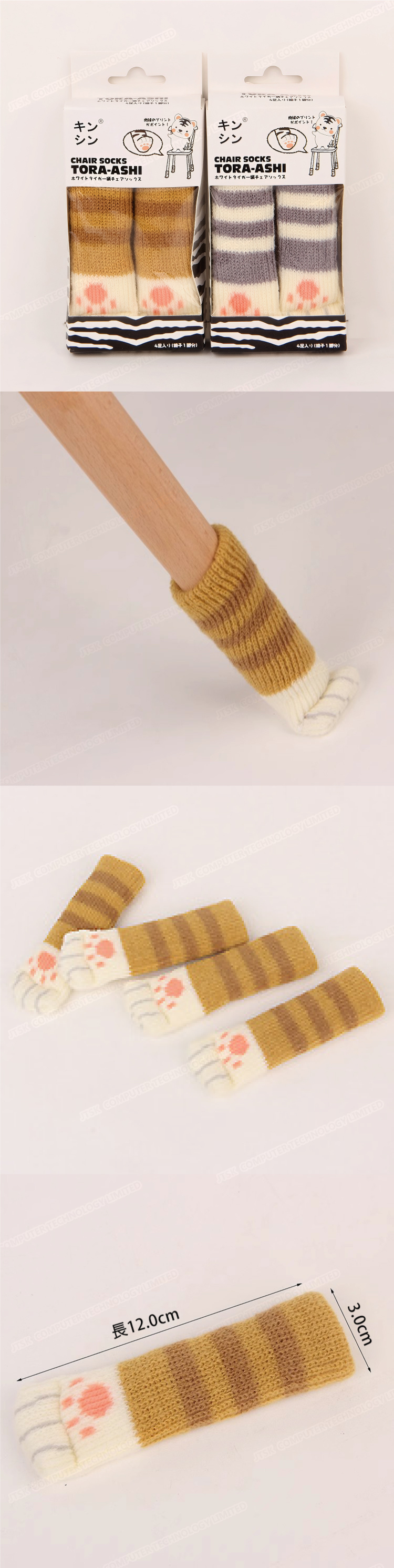 KOMEKI - 針織椅腳套 貓咪爪子可愛 家具桌腳防刮套(灰色,棕色各1對) A0220
