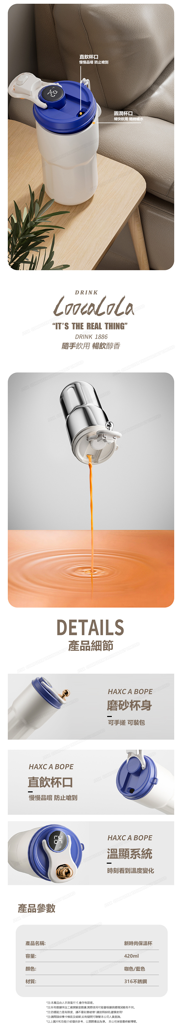韓國AMC 316不鏽鋼保冷保溫杯 智能顯溫咖啡杯 水杯 (C0014)