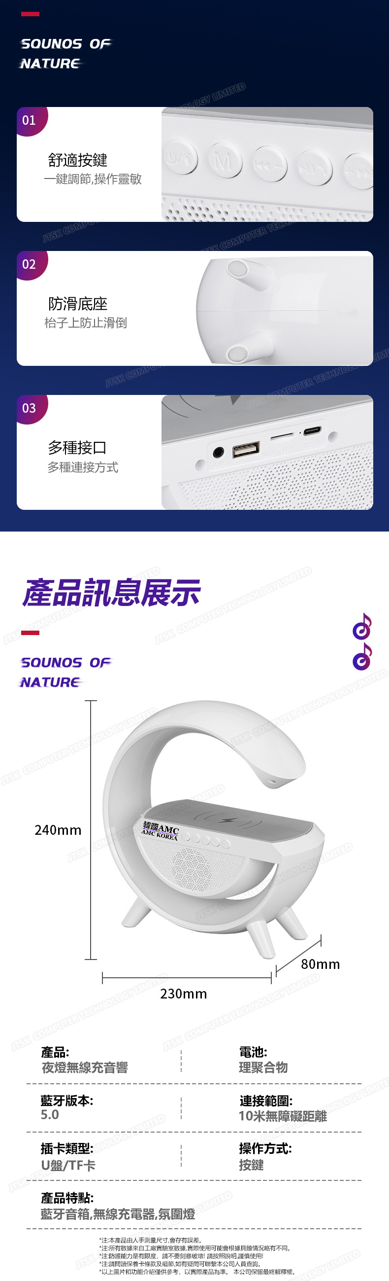 韓國AMC G款藍牙音響氛圍燈 手機無線充創意夜燈 (C0001)