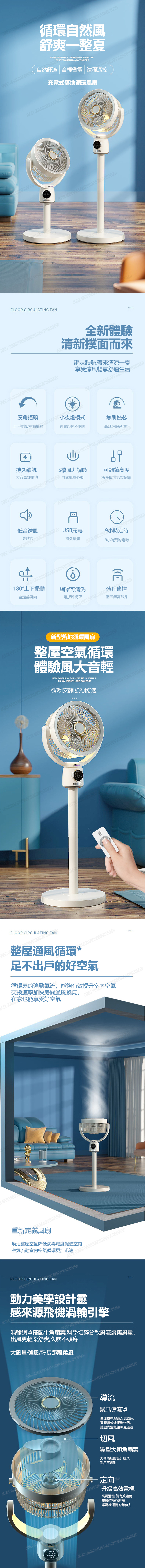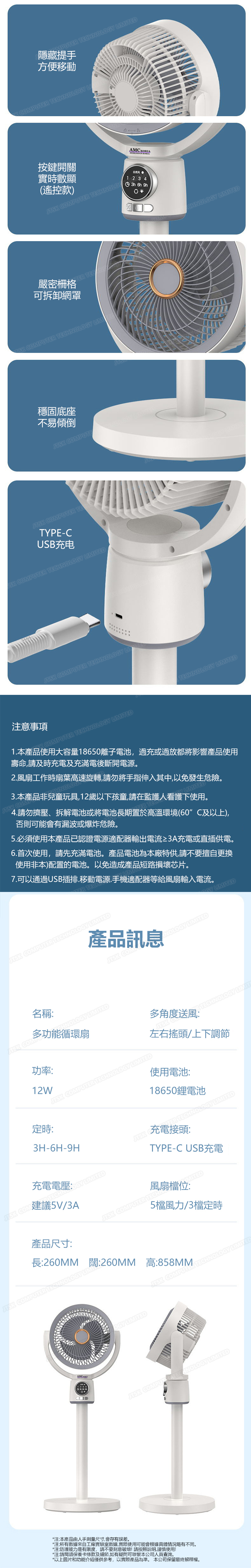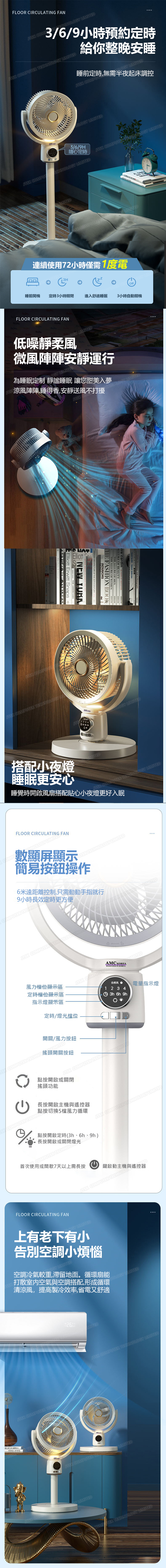 韓國AMC 夜燈款落地式循環風扇