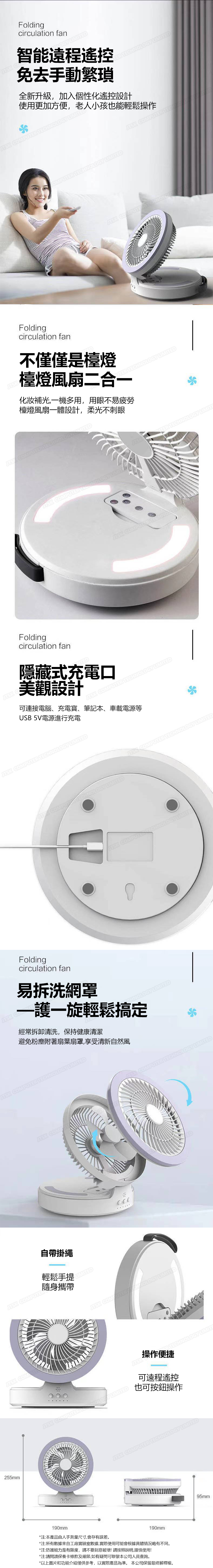 韓國AMC USB充電款帶燈折疊式空氣循環扇