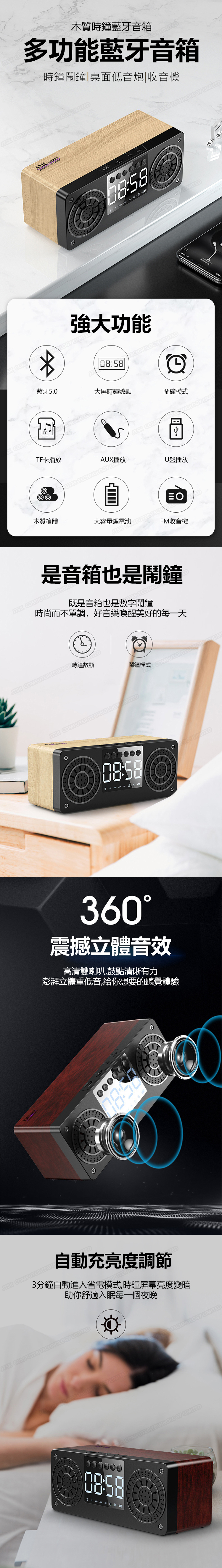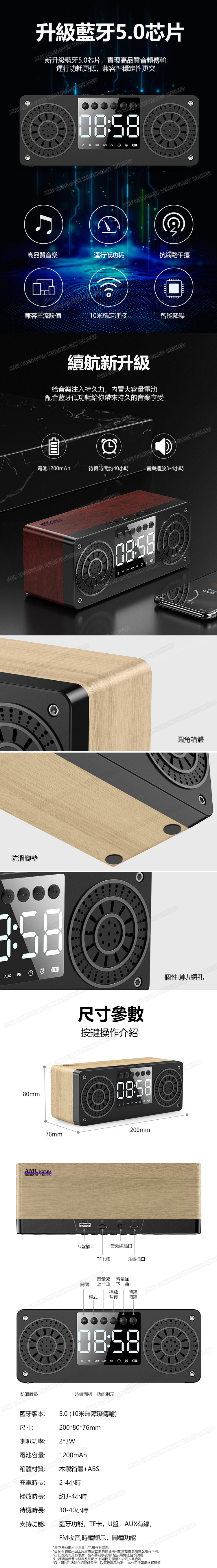 韓國AMC 木質鬧鐘款藍牙音響喇叭