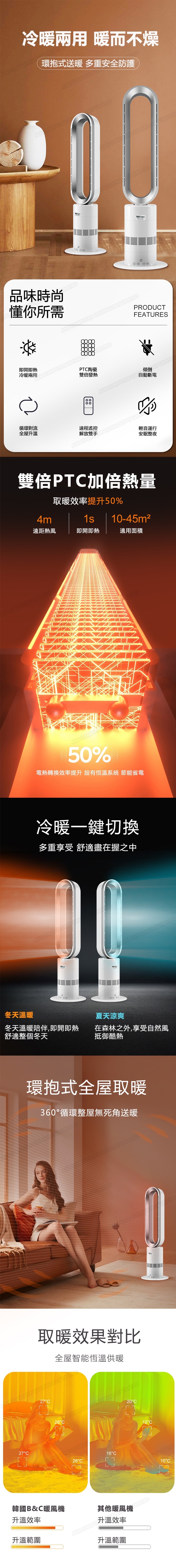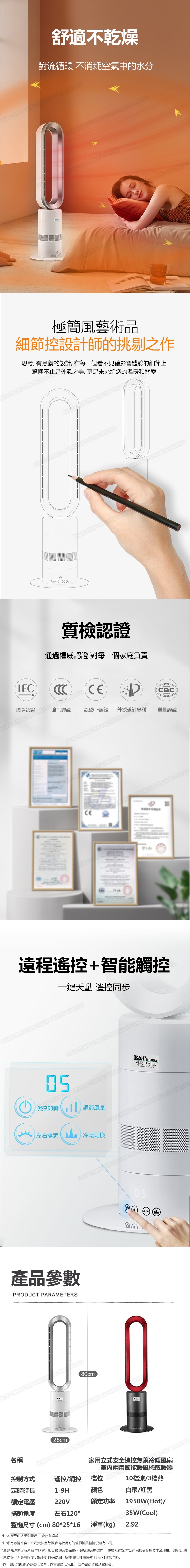 韓國B&C 家用立式安全遙控無葉冷暖風扇 室內兩用節能暖風機取暖器 (B0210)