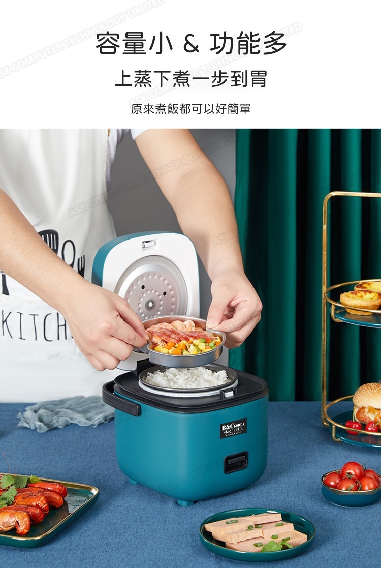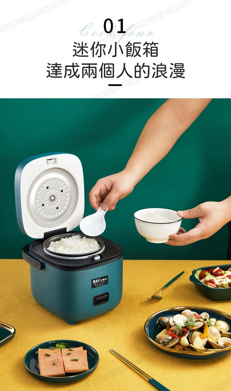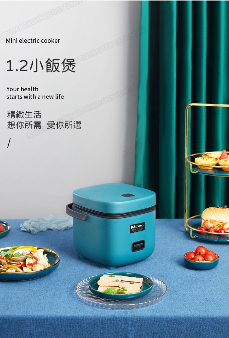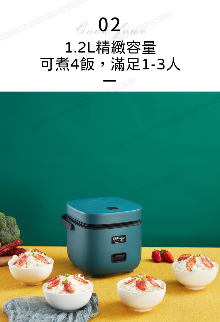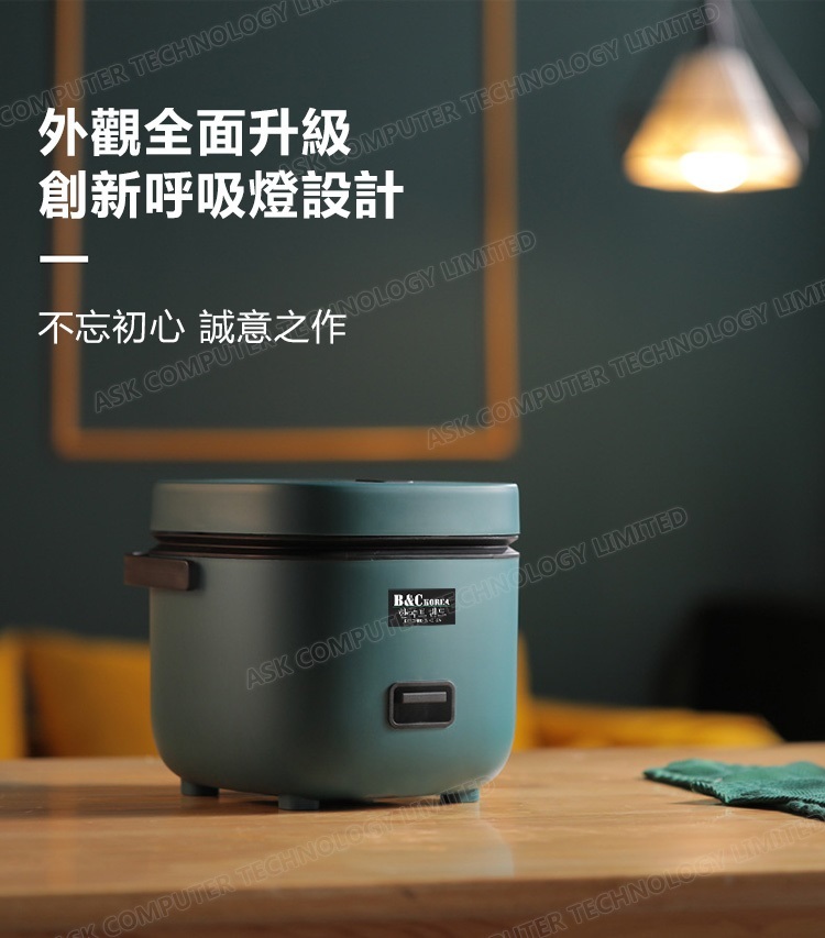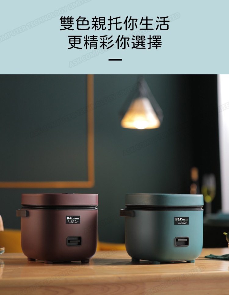 韓國B&C 家用迷你多功能1.2L電飯煲 黑晶不粘內膽帶蒸碟
