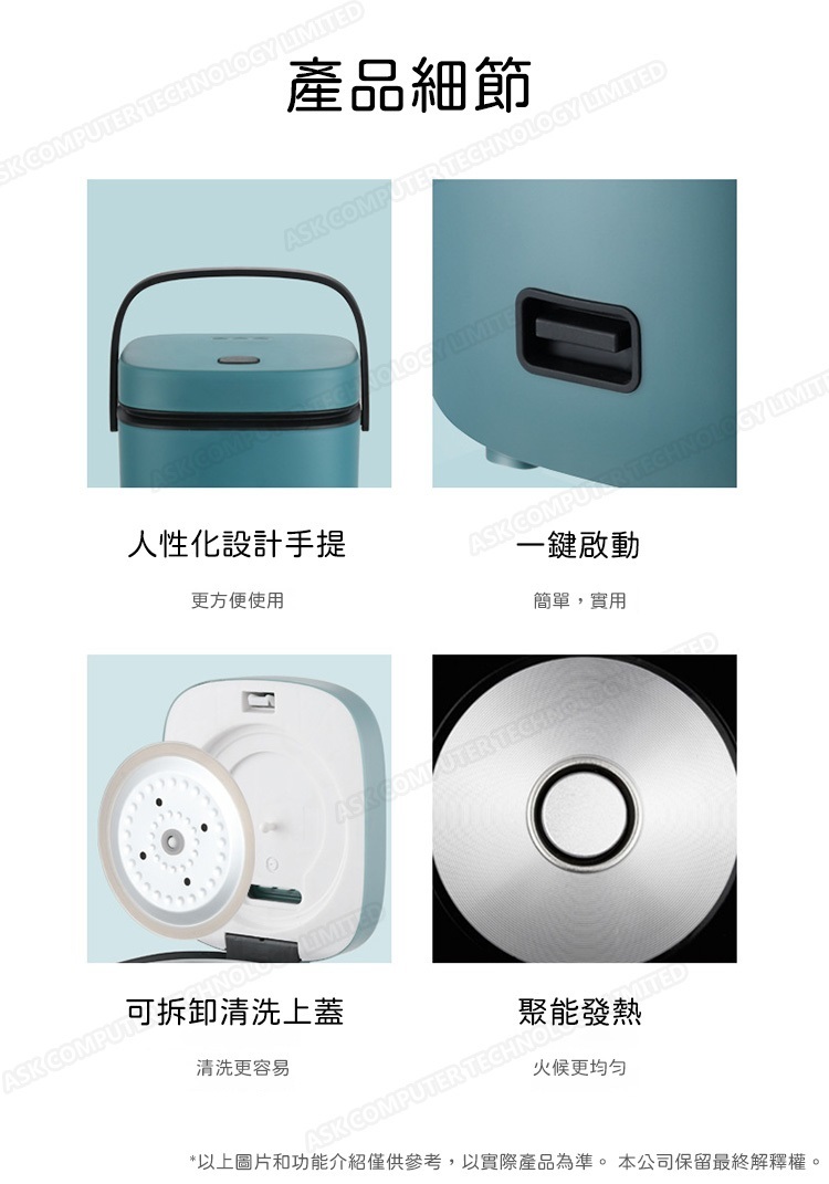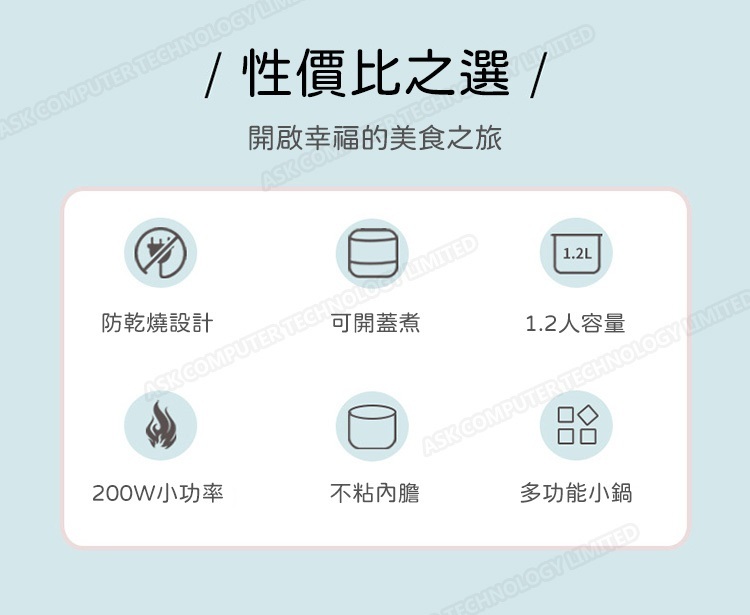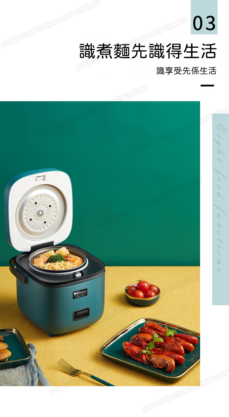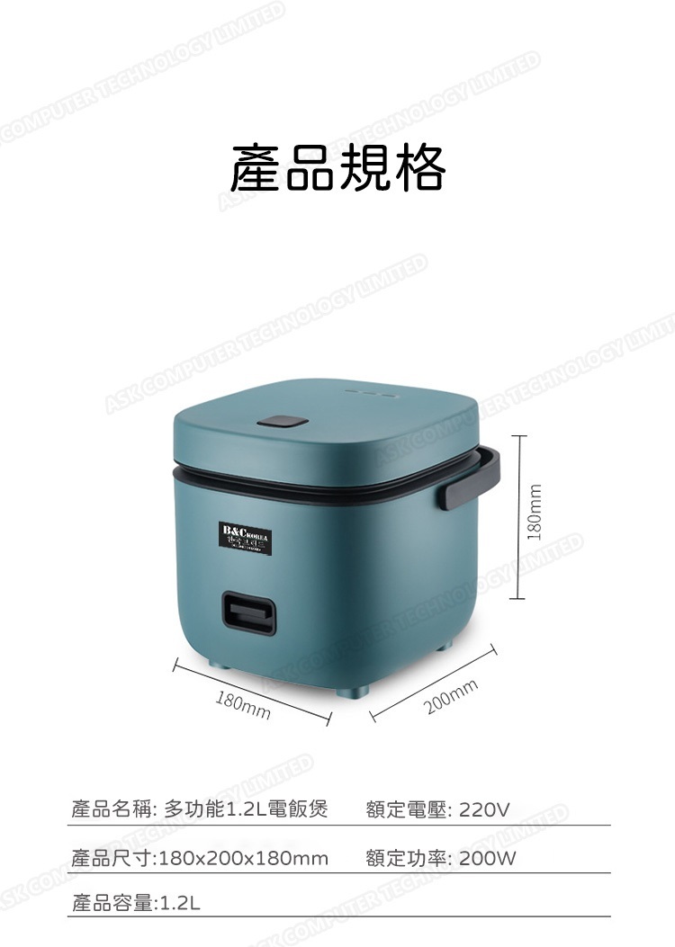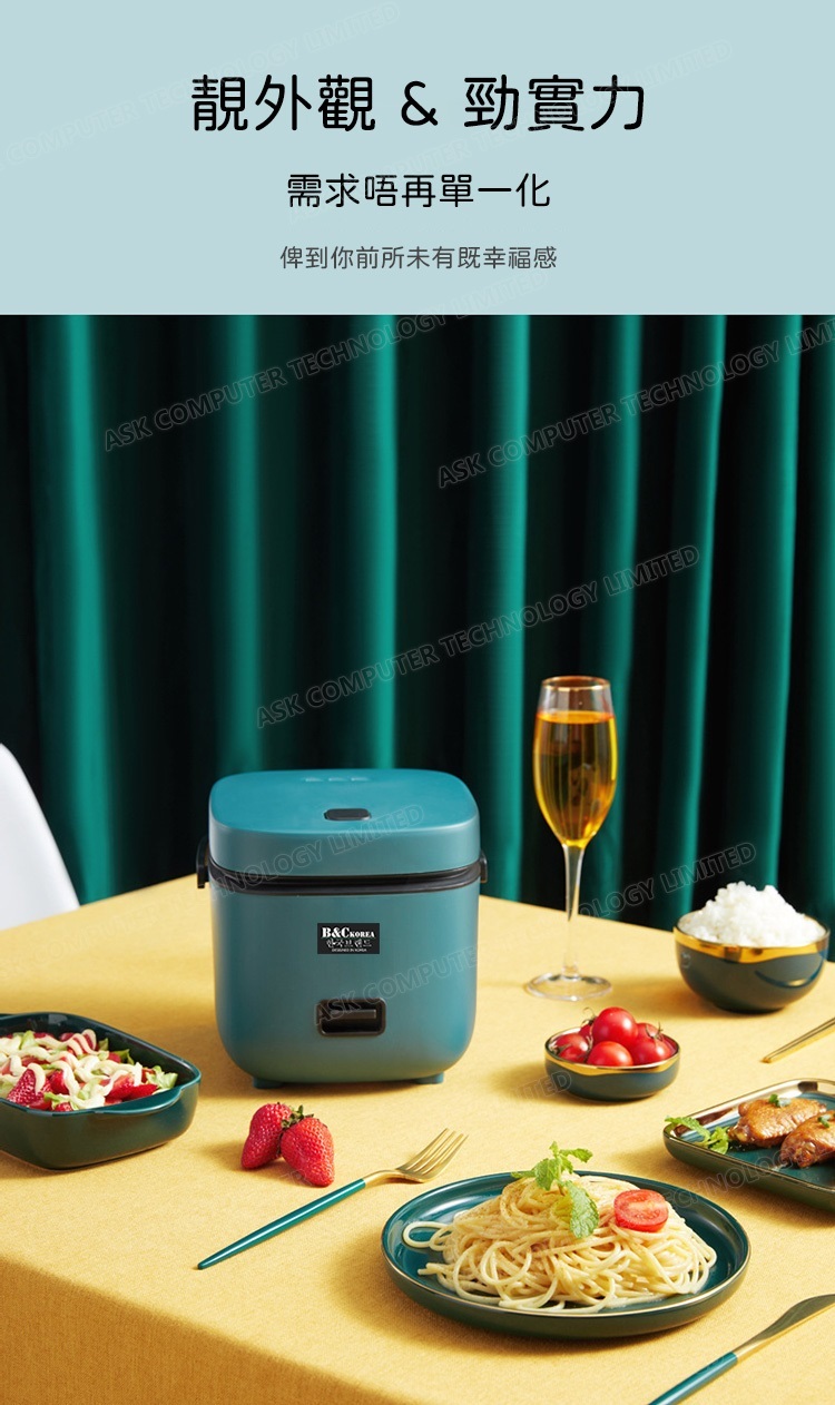 韓國B&C 家用迷你多功能1.2L電飯煲 黑晶不粘內膽帶蒸碟