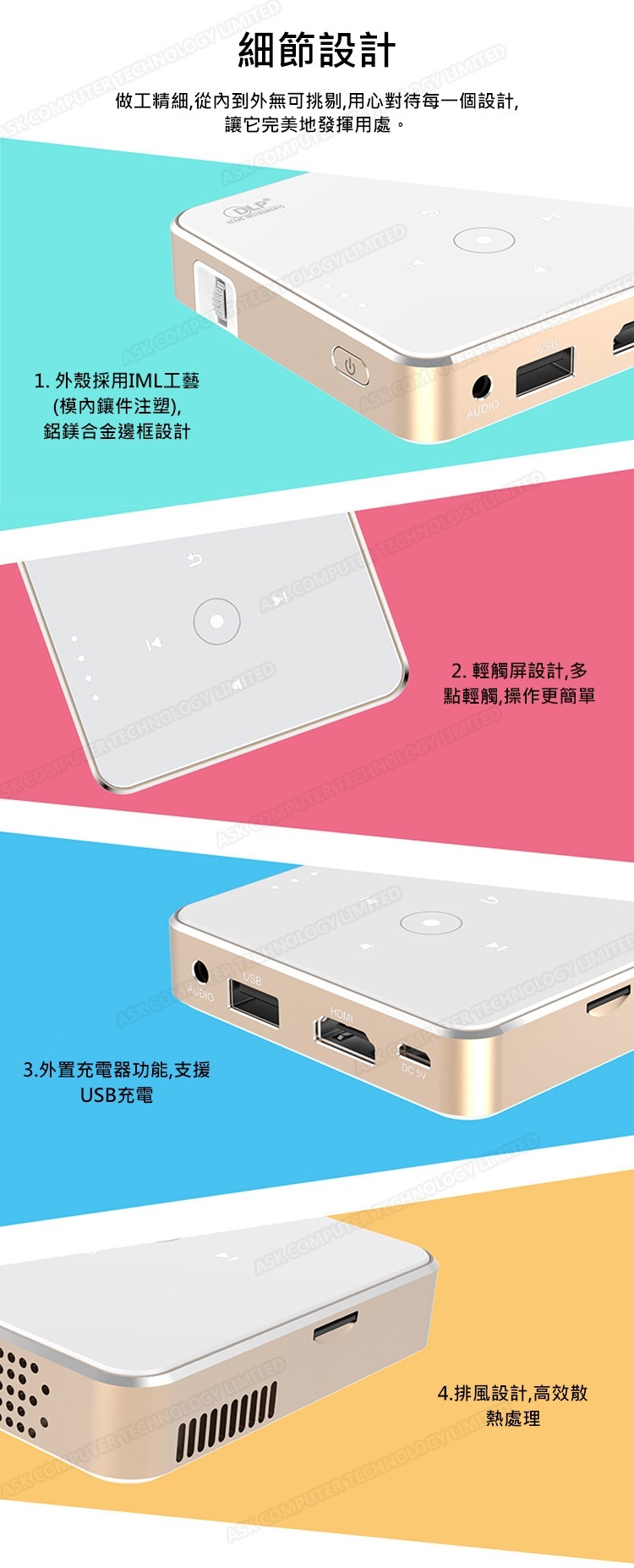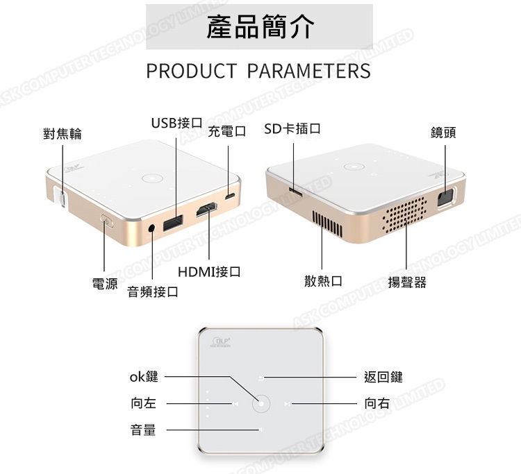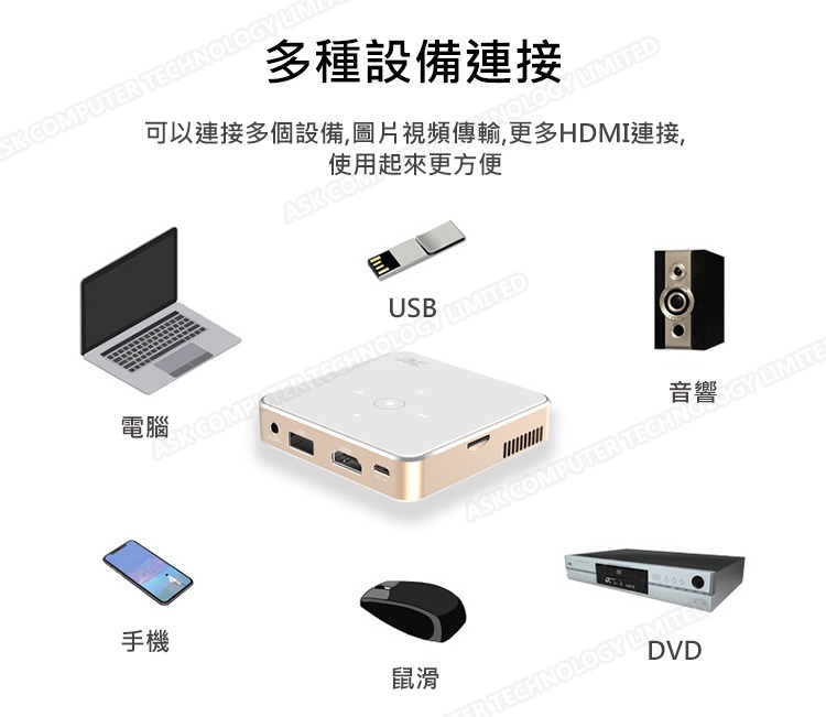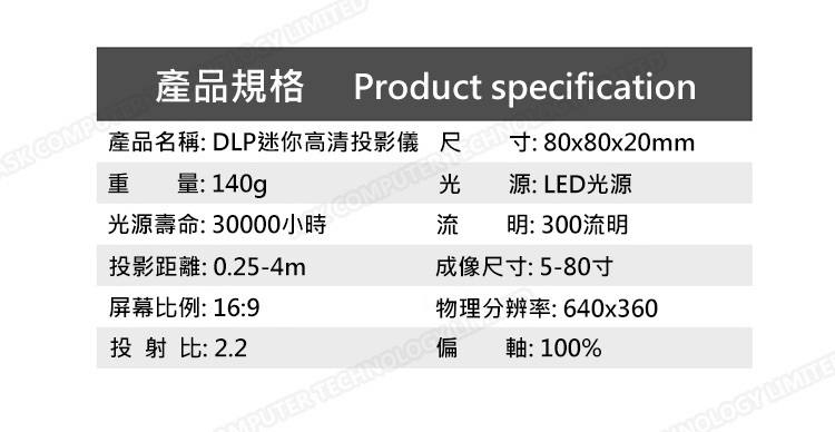 韓國B&C 全高清小型投影儀 DLP便攜式微型投影機(內置移動電源)