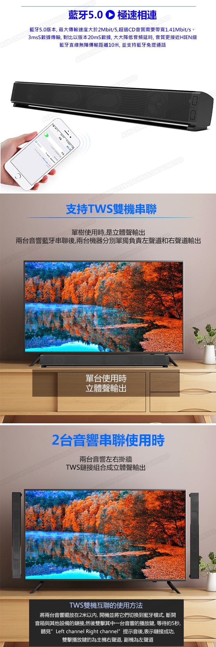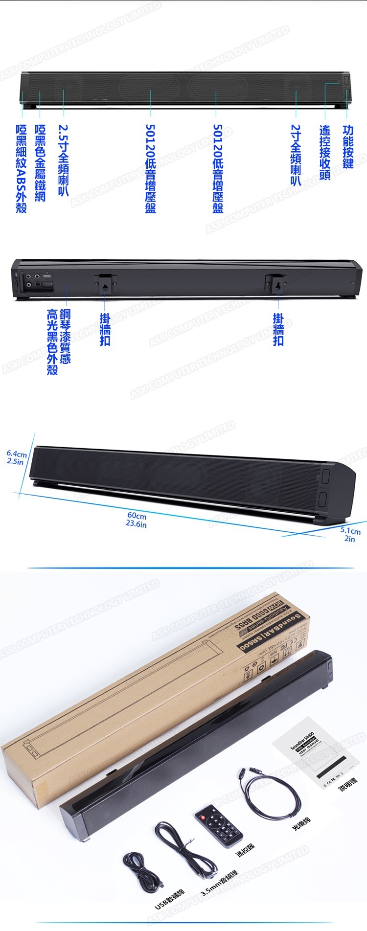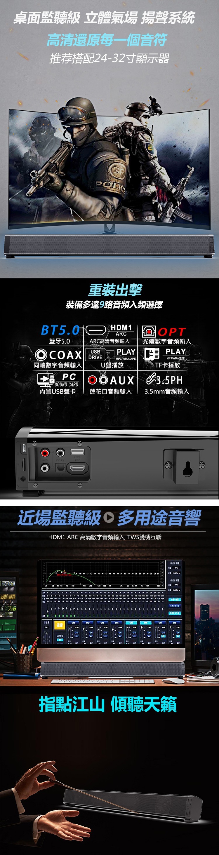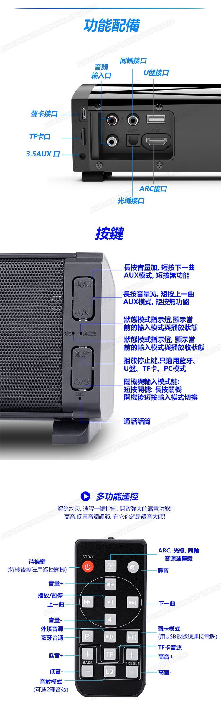 韓國B&C 多功能PCSoundbar藍牙喇叭音響 電腦電視家庭影院長條音箱