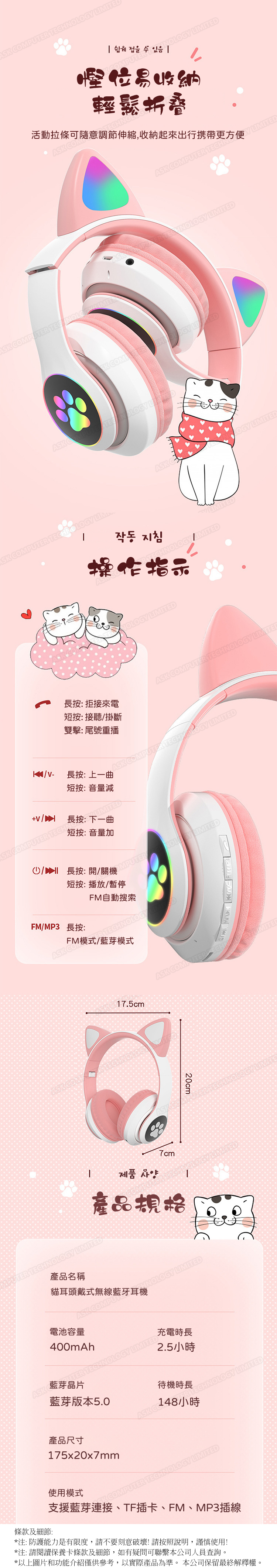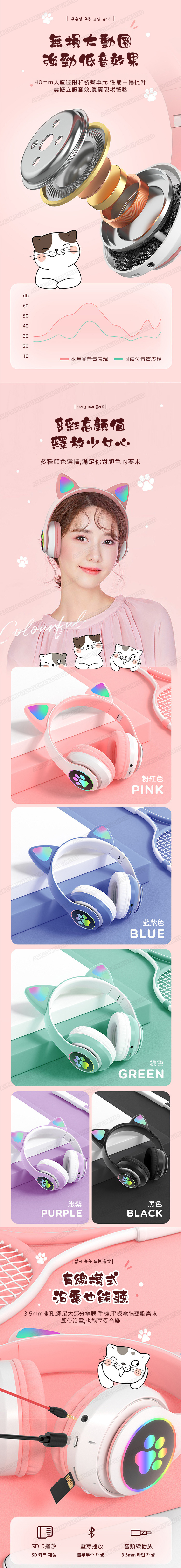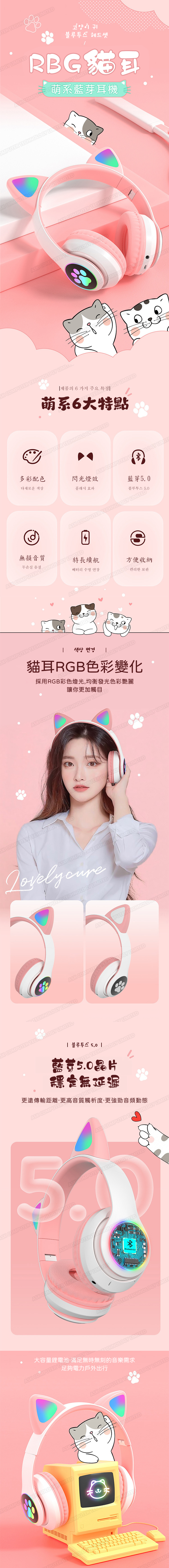 韓國B&C 新款貓耳朵頭戴式5.0無線藍牙耳機 發光電腦電競運動耳麥