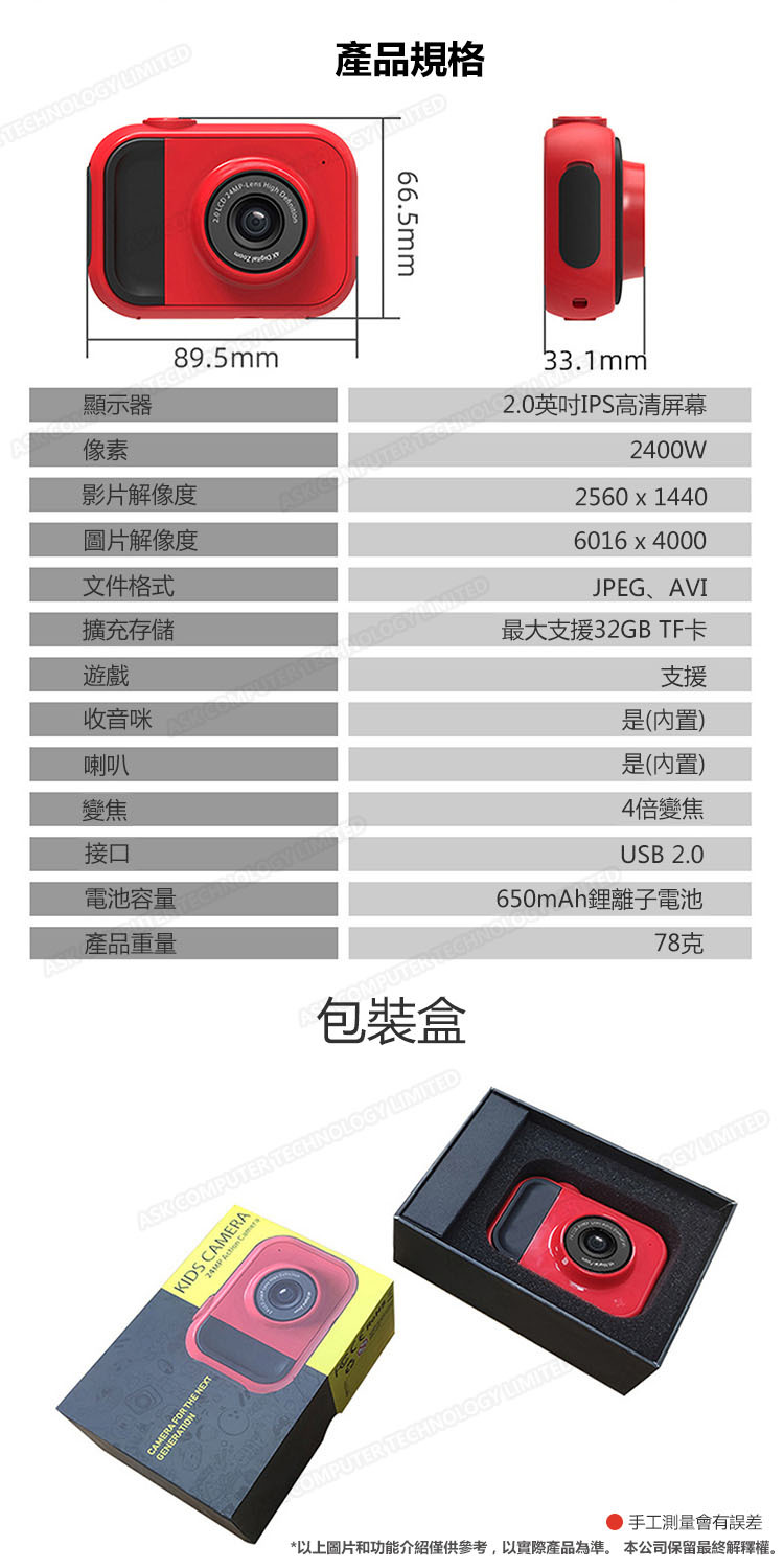 韓國B&C 新款高清數碼拍照錄像小單反數碼兒童相機 (B0011)