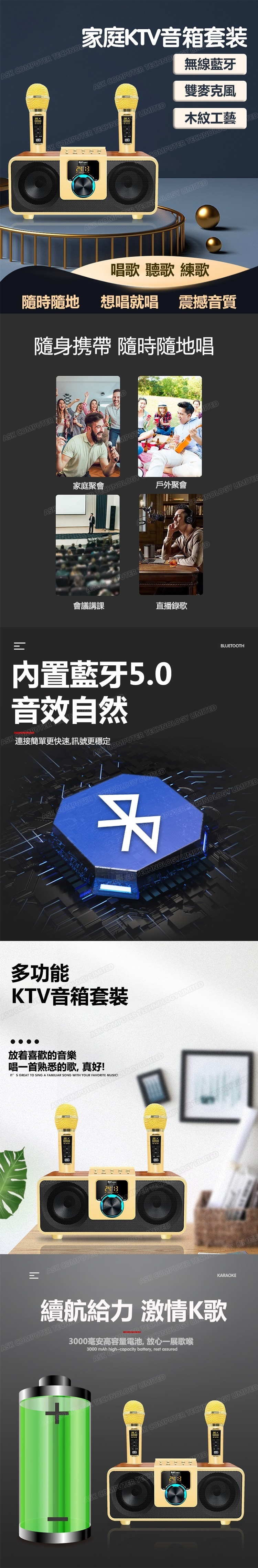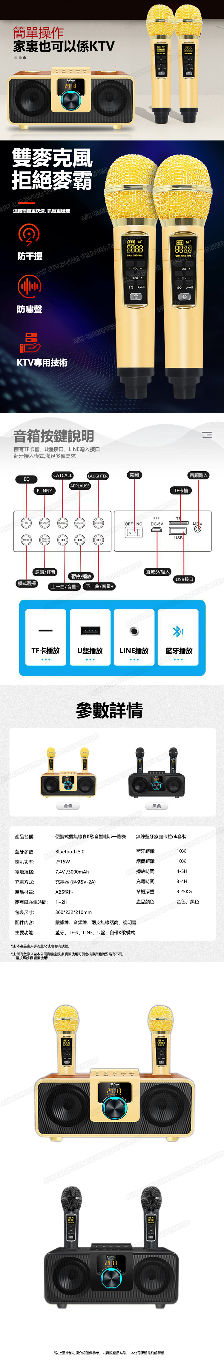 韓國B&C 便攜式雙無線麥K歌音響喇叭一體機 無線藍牙家庭卡拉ok套裝