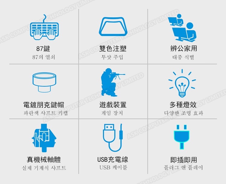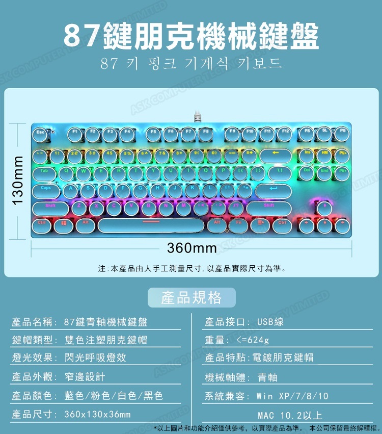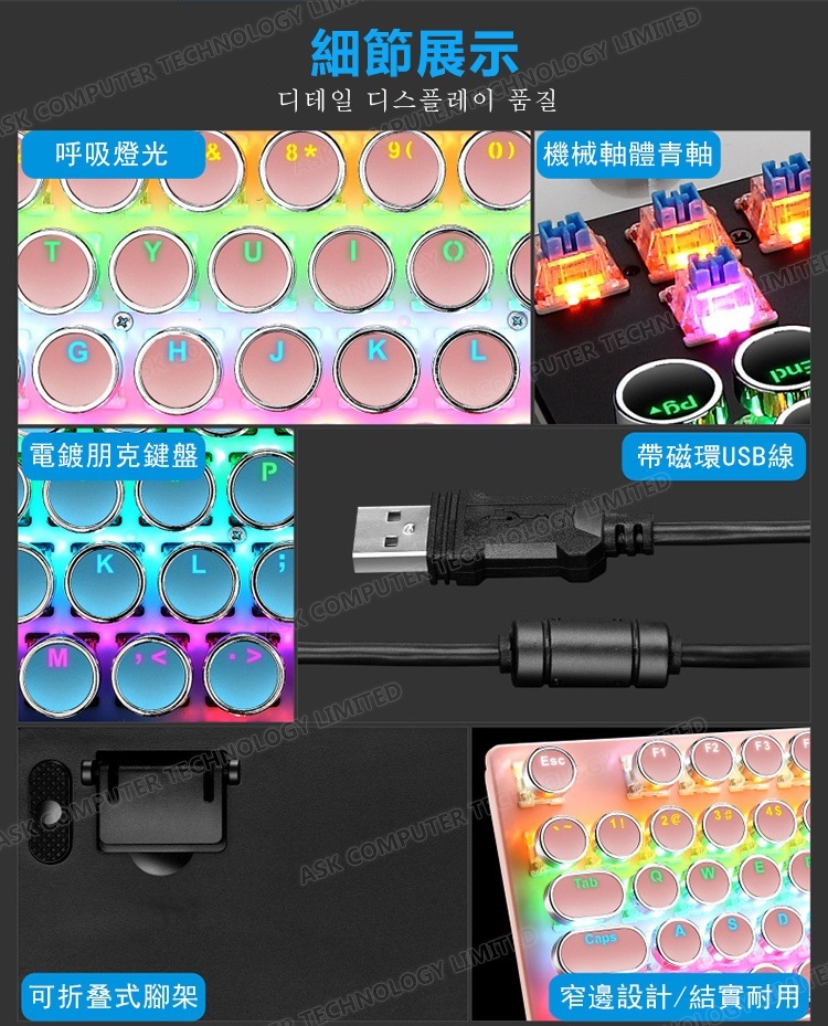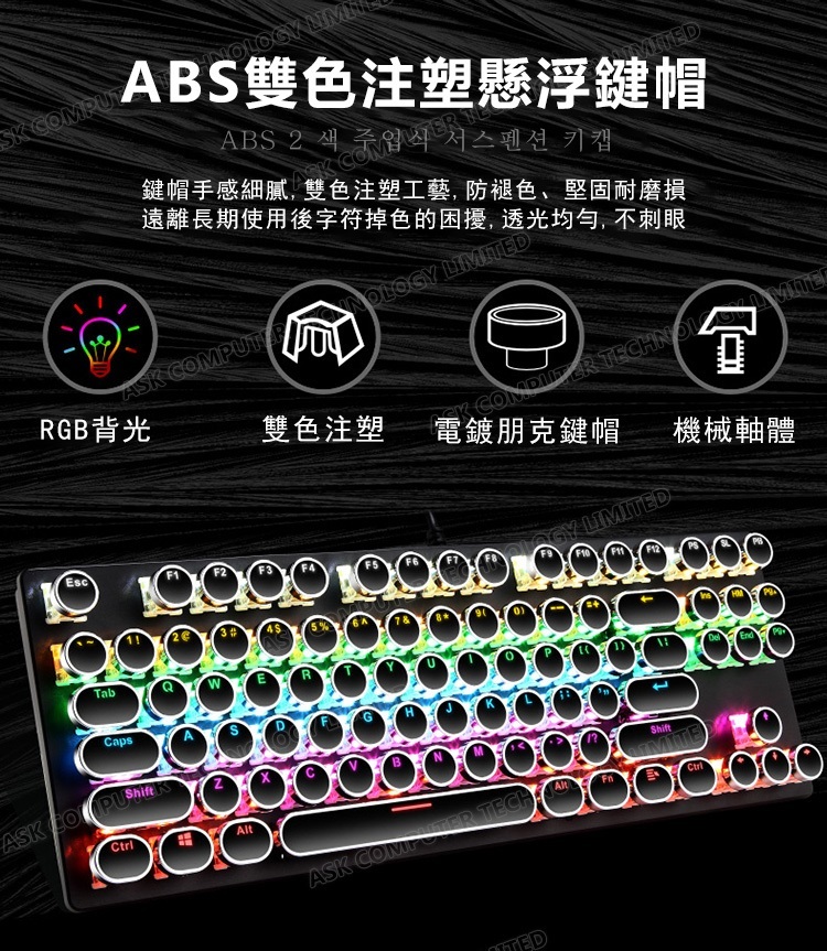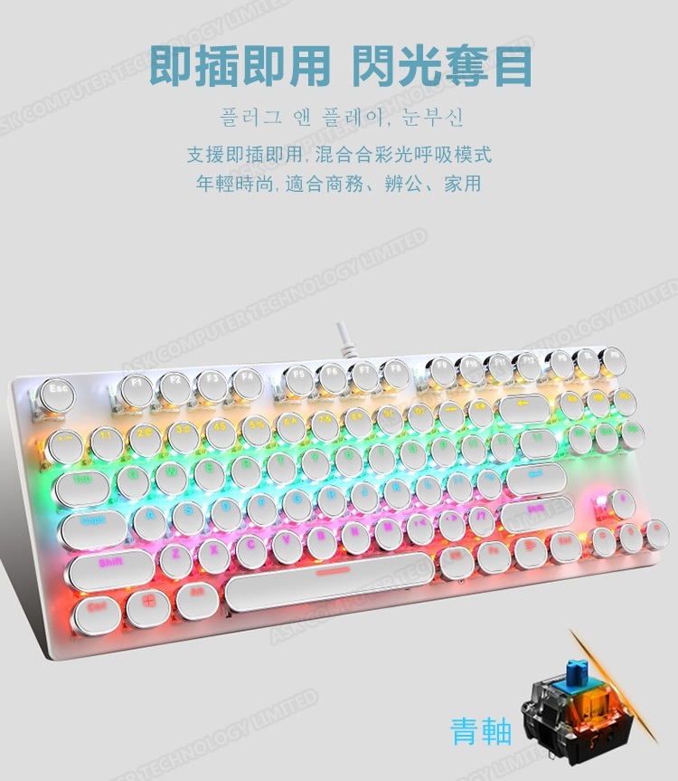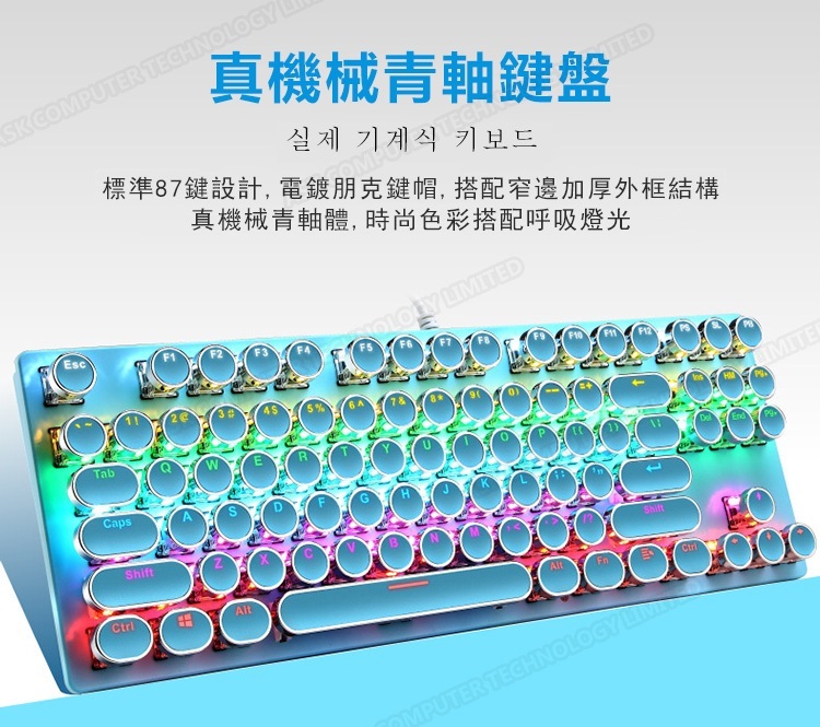 韓國B&C 朋克電腦電競遊戲機械鍵盤 台式電腦遊戲辦公鍵盤 B0120
