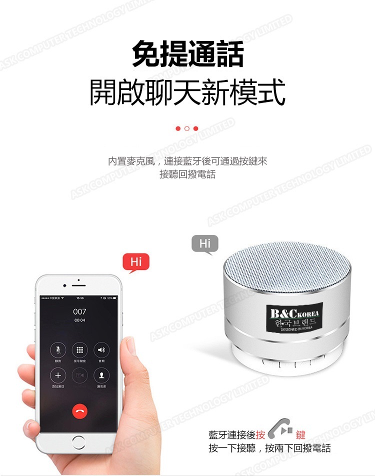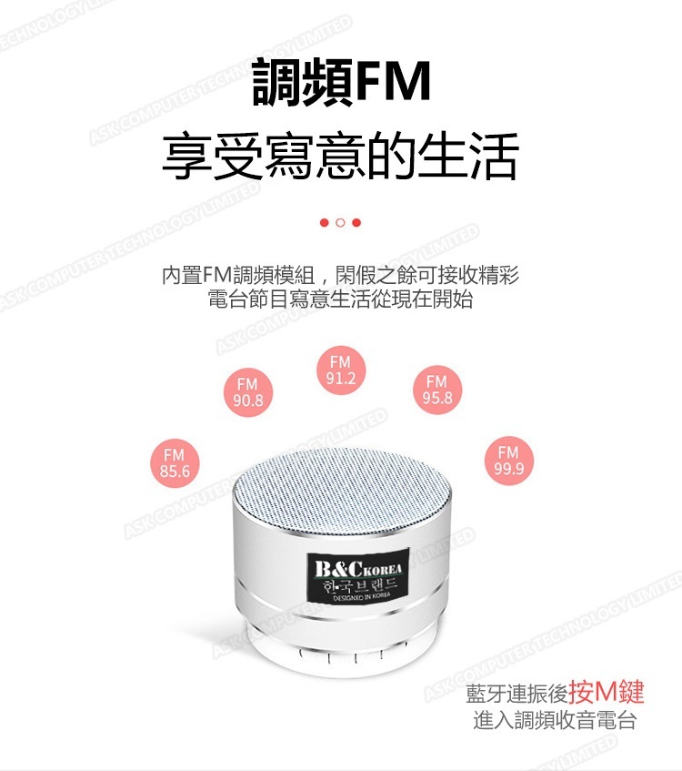 韓國B&C 小鋼砲金屬插卡無線藍牙音箱 手機音響喇叭
