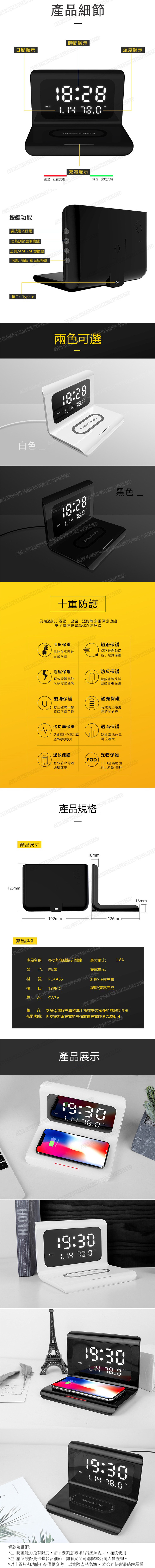 韓國B&C 智能折疊三合一無線充電器 多功能10W無線快充帶鬧鐘