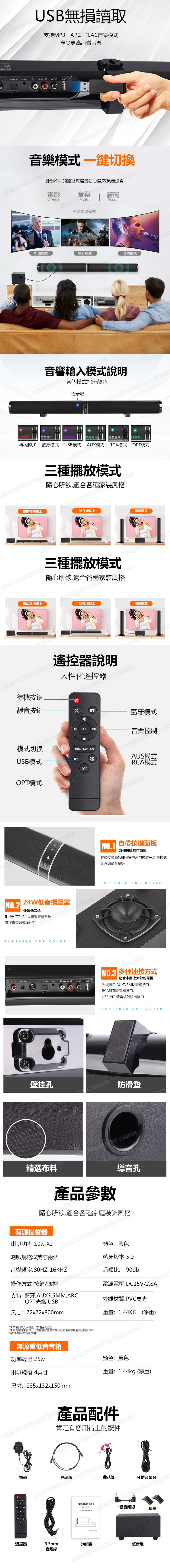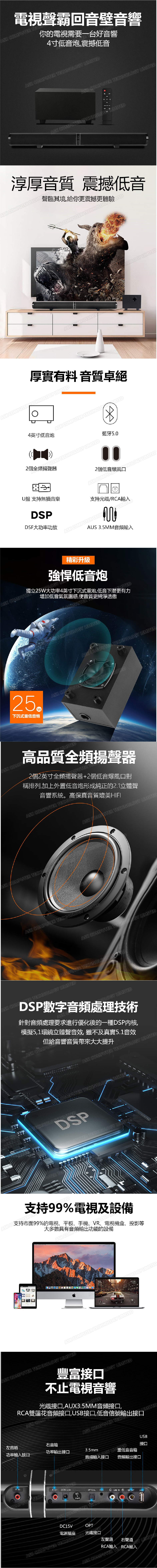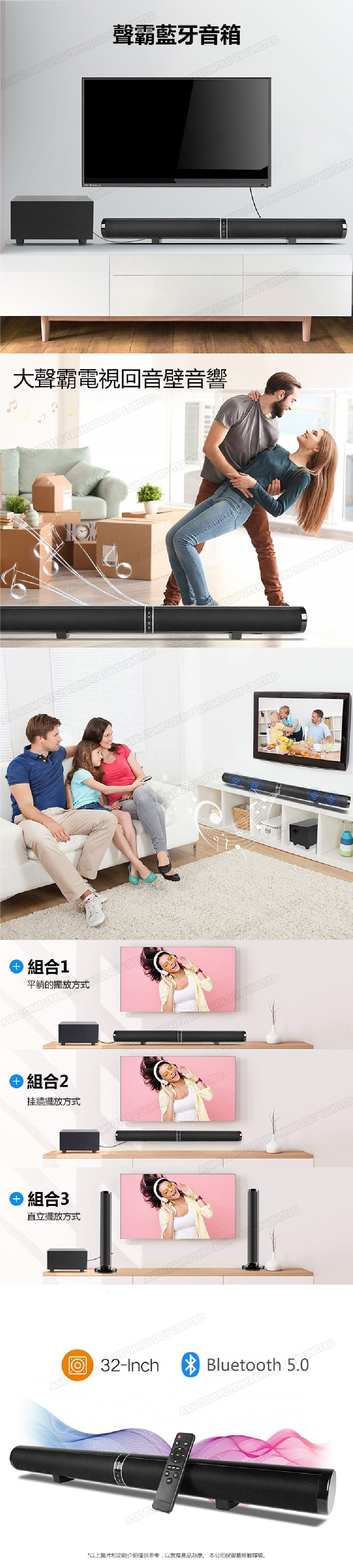 韓國B&C 智能遙控USB插卡藍牙5.0回音壁音響 家用重低音炮可掛壁音箱 (B0172)
