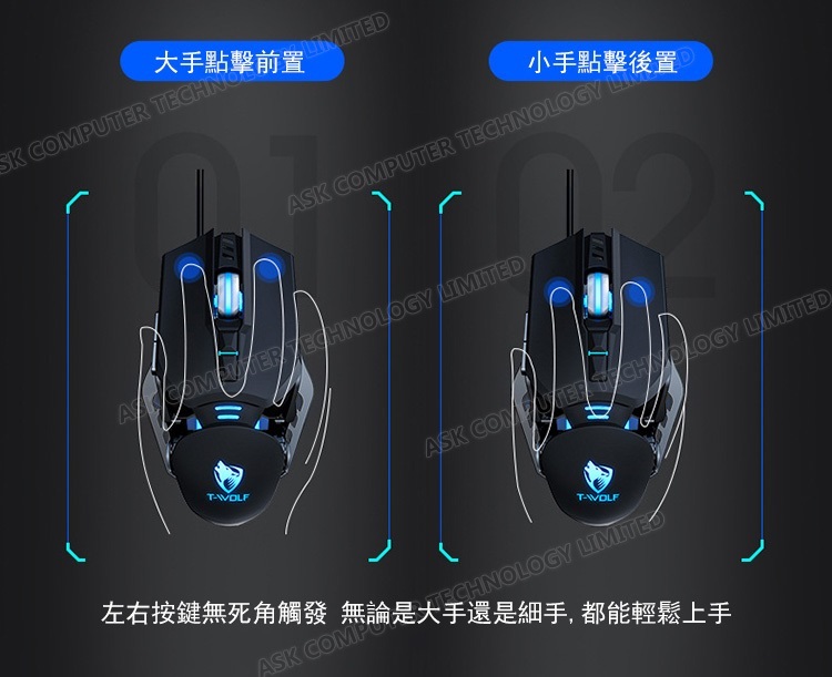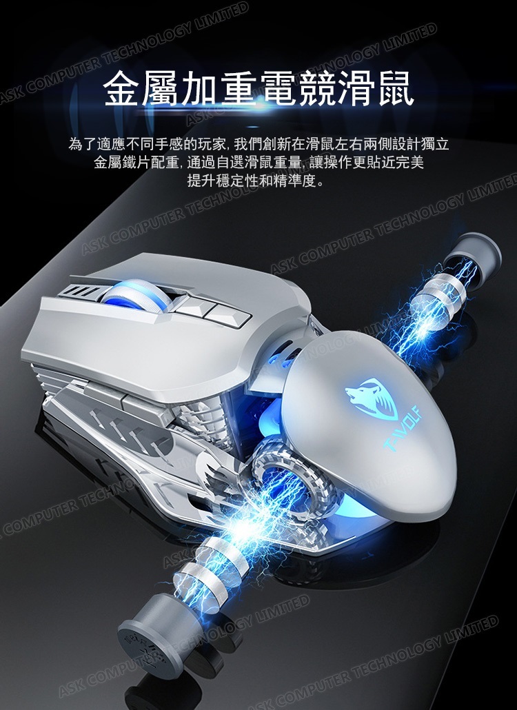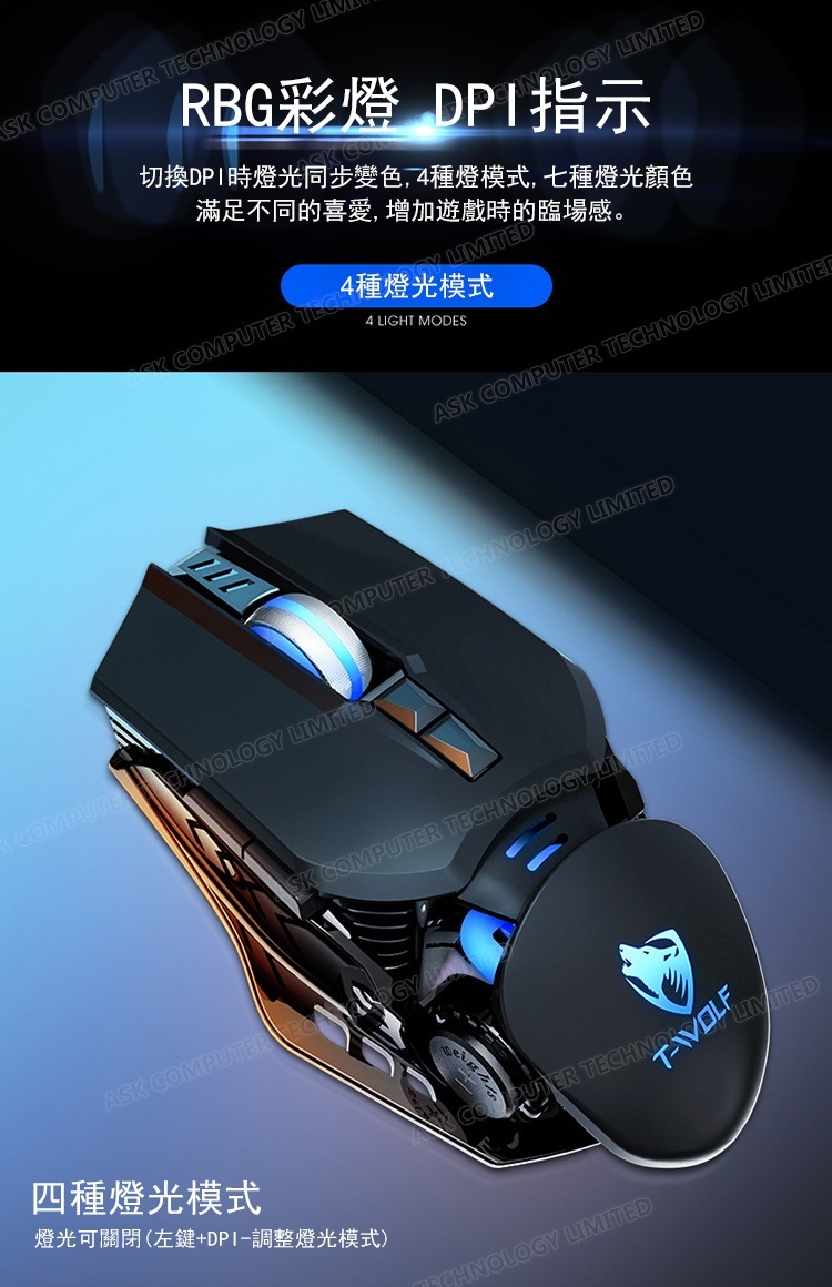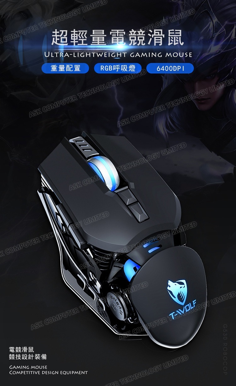 韓國B&C T-WOLF G530遊戲發光鼠標 電競遊戲有線USB MOUSE (B0114)