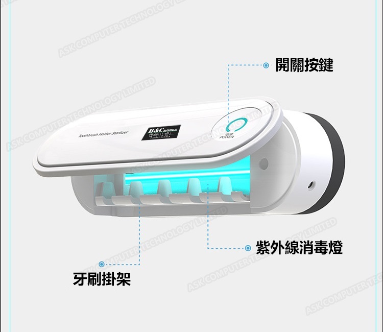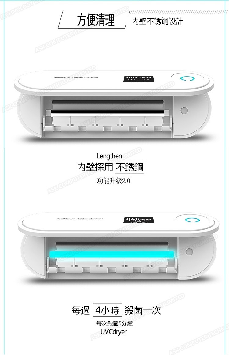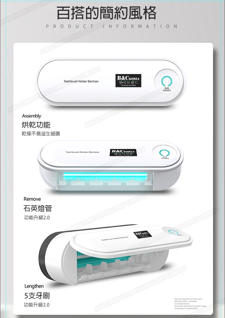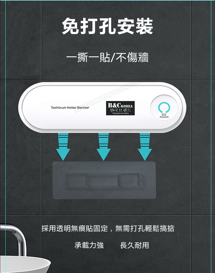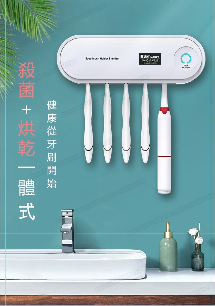 韓國B&C 紫外線烘乾殺菌消毒牙刷消毒器 免打孔吸壁掛式牙刷置物架